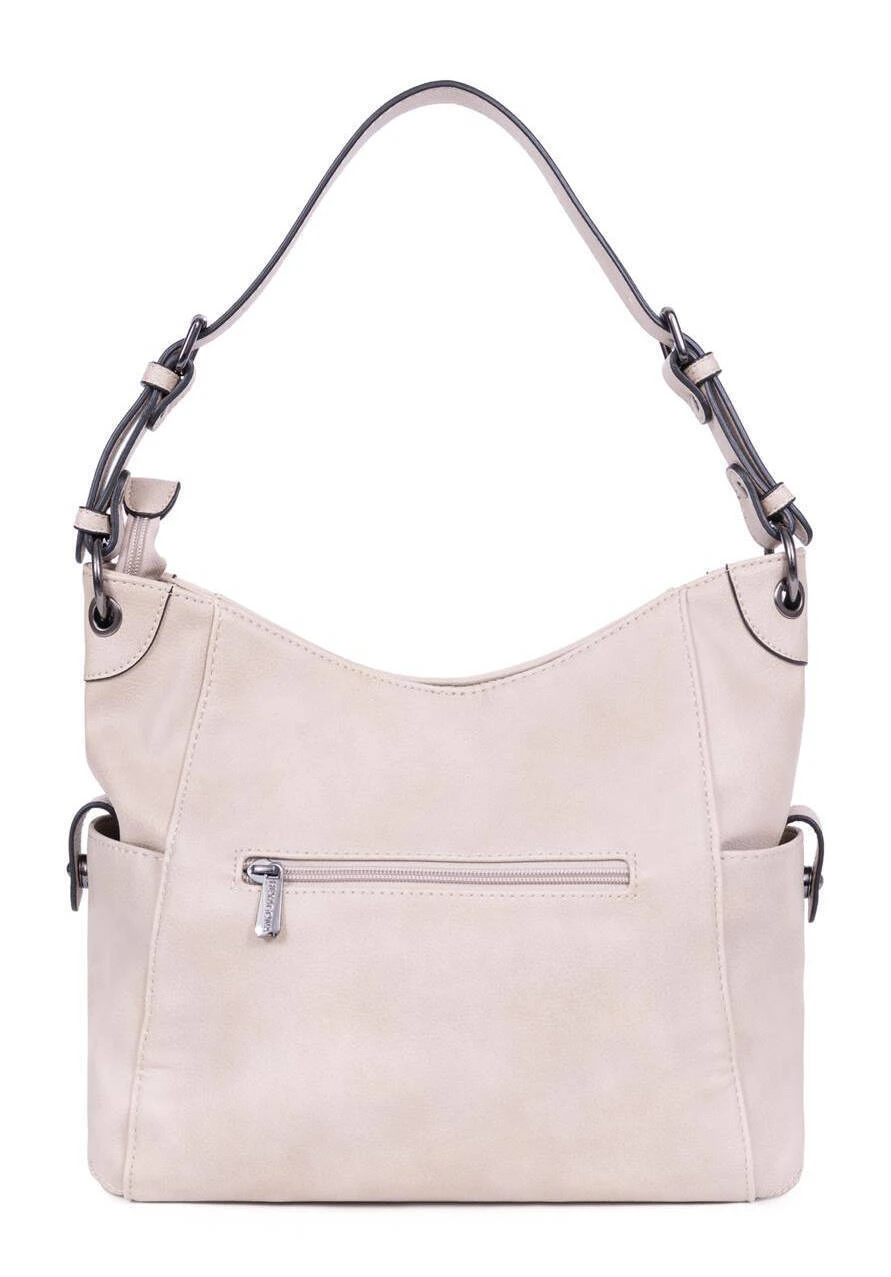 Besace en matière Synthétique de la collection Hexagona, sa doublure est elle aussi synthétique.Le sac possède une fermeture zippée et une métallerie canon de fusil sous le sac. Vous retrouvez 1 compartiment principal, avec 1 poche de séparation zippée + 1 poche plate zippée + 2 poches plates (dont 1 compartiment téléphone) et 1 poche arrière plate zippée.Il y a aussi 2 poches latérales à patte aimantée. Sa bandoulière principale est réglable et fait de 50 à 67 cm, sur 3.5 cm de large, elle a 8 crans et vous avez en complément 1 bandoulière supplémentaire réglable 10 crans, qui fait de 78 cm à 108 cm sur 2.5 de large. Ce sac besace synthétique fait 38 cm de long par 6 cm de large sur une hauteur 30 cm. Long.