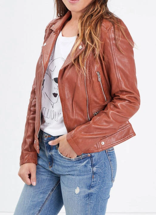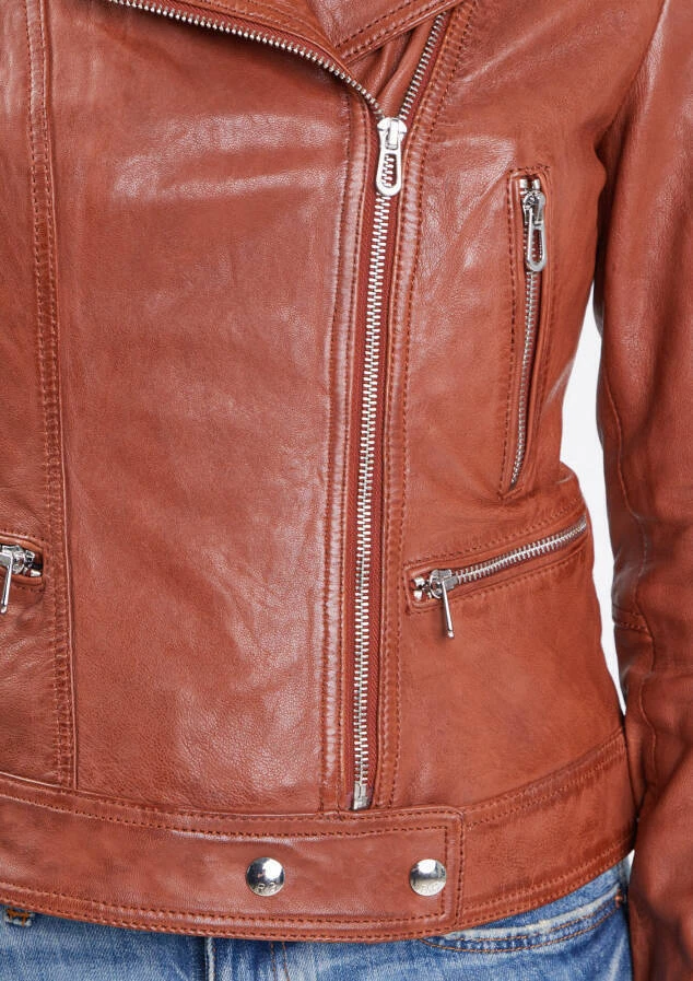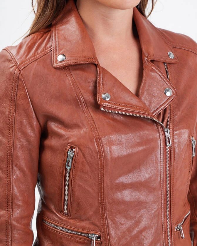 Blouson en cuir de la marque Rose Garden dans un style moderne et tendance. Ce blouson est en cuir d’agneau au tannage végétal décliné en 6 coloris , pour satisfaire toutes vos envies et vos looks . On retrouve un col tailleur à pressions, une Fermeture asymétrique zippée avec patte à pressions. Pour plus de confort , d’aisance , vous avez également un Bas de manches zippés. Sur l’avant, il y a 4 poches extérieures zippées dont 2 poches poitrine. Sa doublure corps est en coton esprit tropical avec 1 poche intérieure et ses manches en polyester.