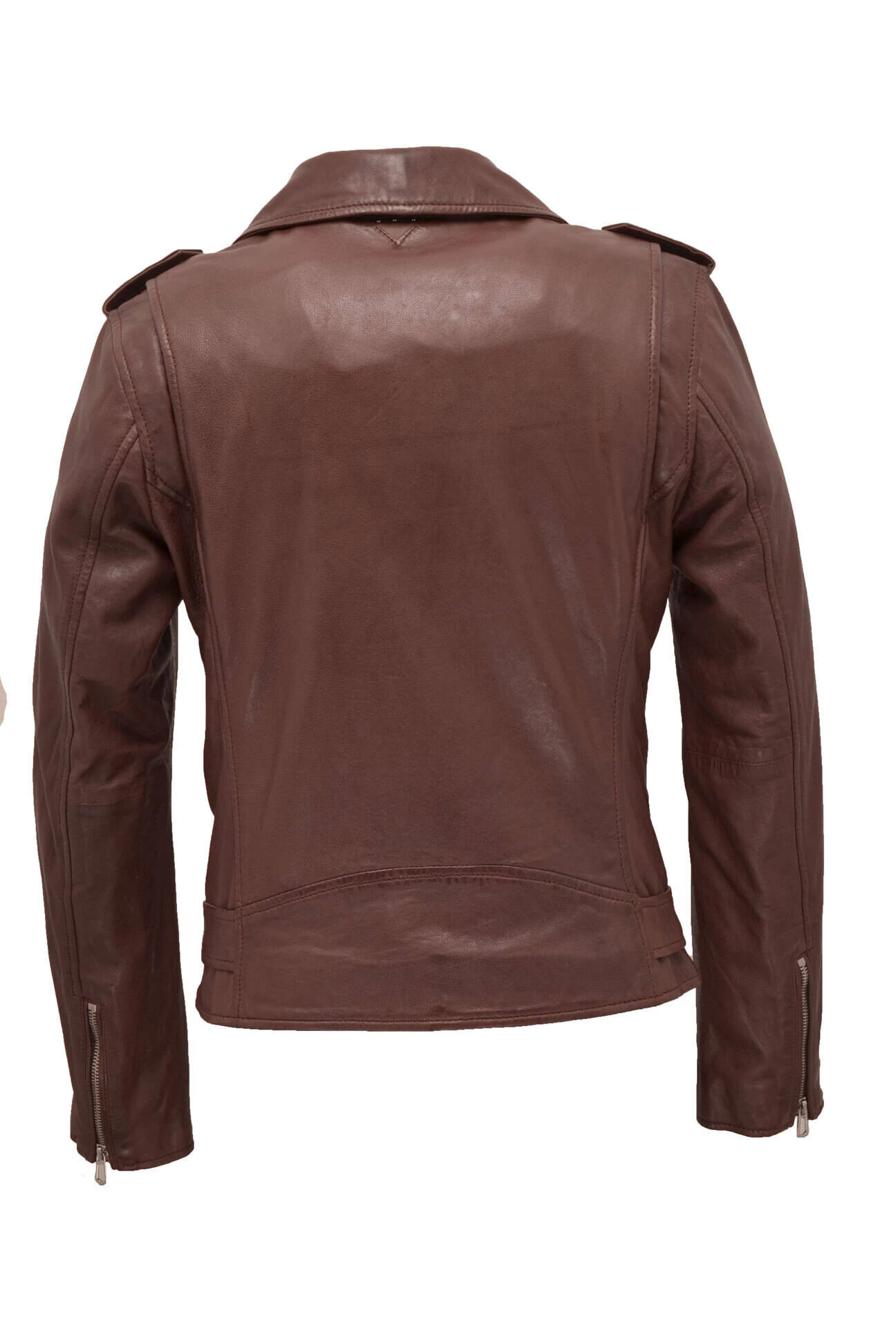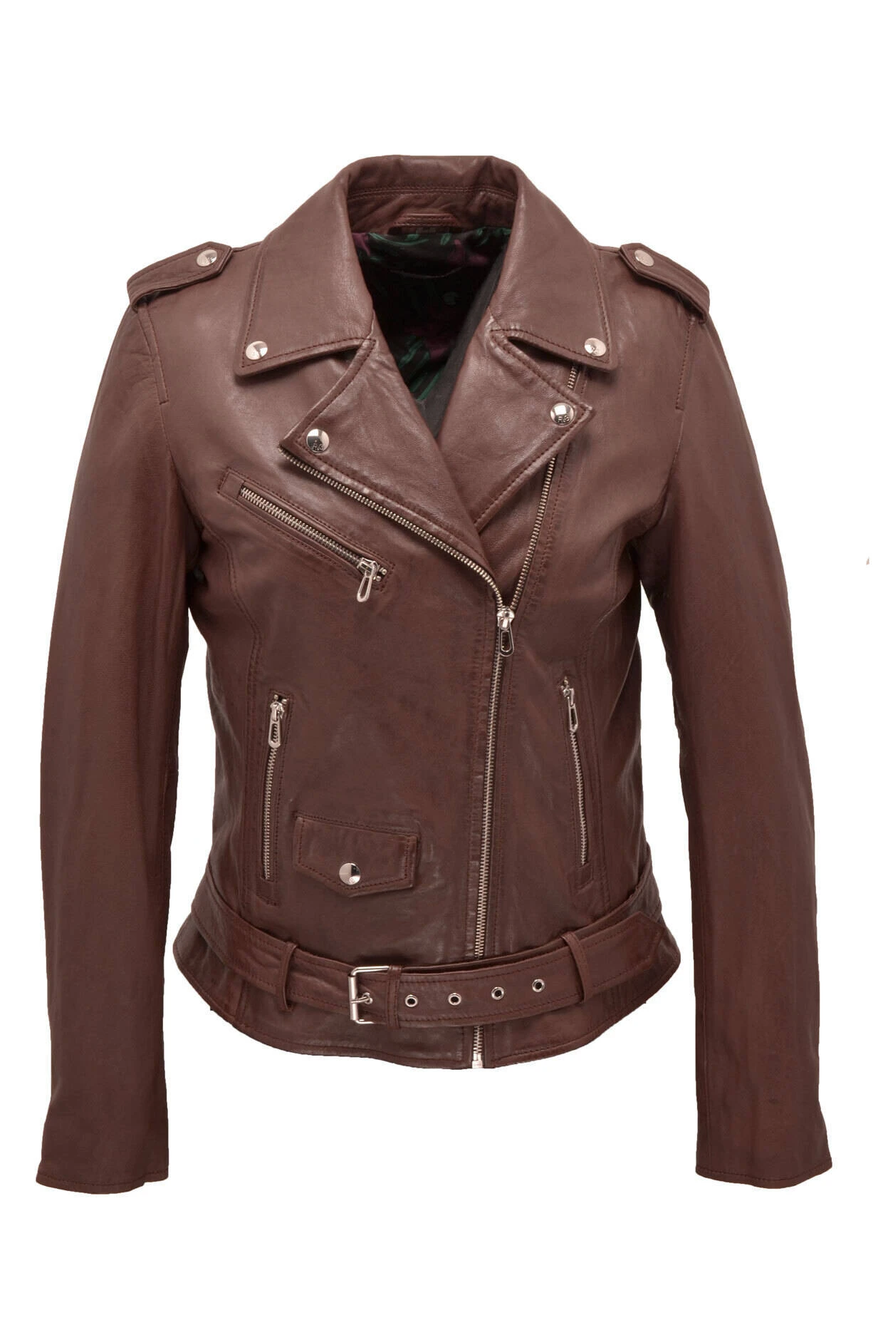 Blouson en cuir d’agneau lavé et ciré , tannage 100 % végétal de la collection Rose Garden .Ce modèle fait partie d’une gamme colorée , son look rock moderne puise son inspiration dans les blousons biker largement visible à travers les détails comme le col tailleur à pressions, la fermeture zippée asymétrique, les pattes d’épaule et la ceinture à la taille avec boucle métallique de serrage. On retrouve également des zips d’aisance en bas de manche. Vous avez 3 poches extérieures zippées et 2 poches intérieures dont 1 zippée . Sa Doublure est en coton inspiration florale et ses manches en polyester.