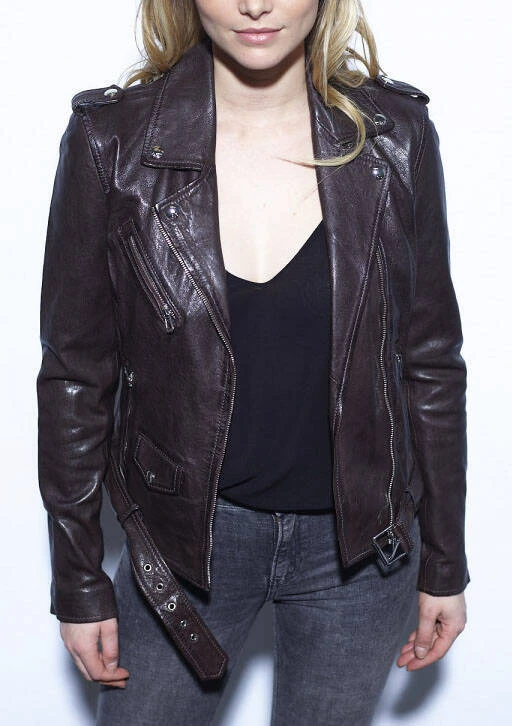 Blouson Cuir Femme Biker Agneau Noir "PANILA"