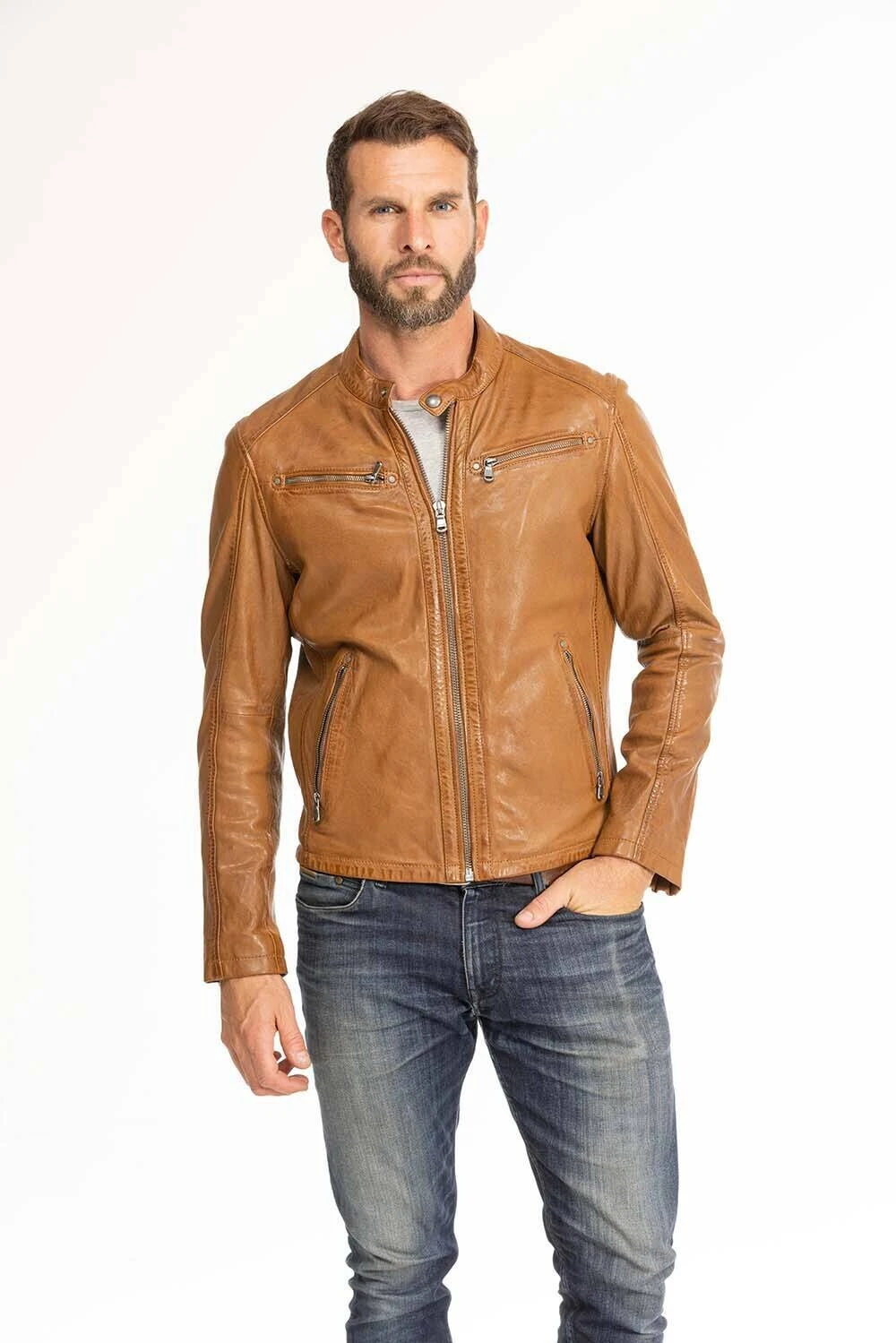 Blouson de cuir en agneau pour homme de la marque Daytona. Il est agréable à porter et est pourvu d’un léger grain qui lui donne un aspect vieilli et vintage. Le col est surmonté d’un col mao style moto et les manches ont une finition avec des fermetures. Le blouson de cuir possède 4 poches extérieures zippées ainsi que 3 poches intérieures : à zip, pression et pour le téléphone. La doublure est en coton au niveau du corps et polyester au niveau des manches.