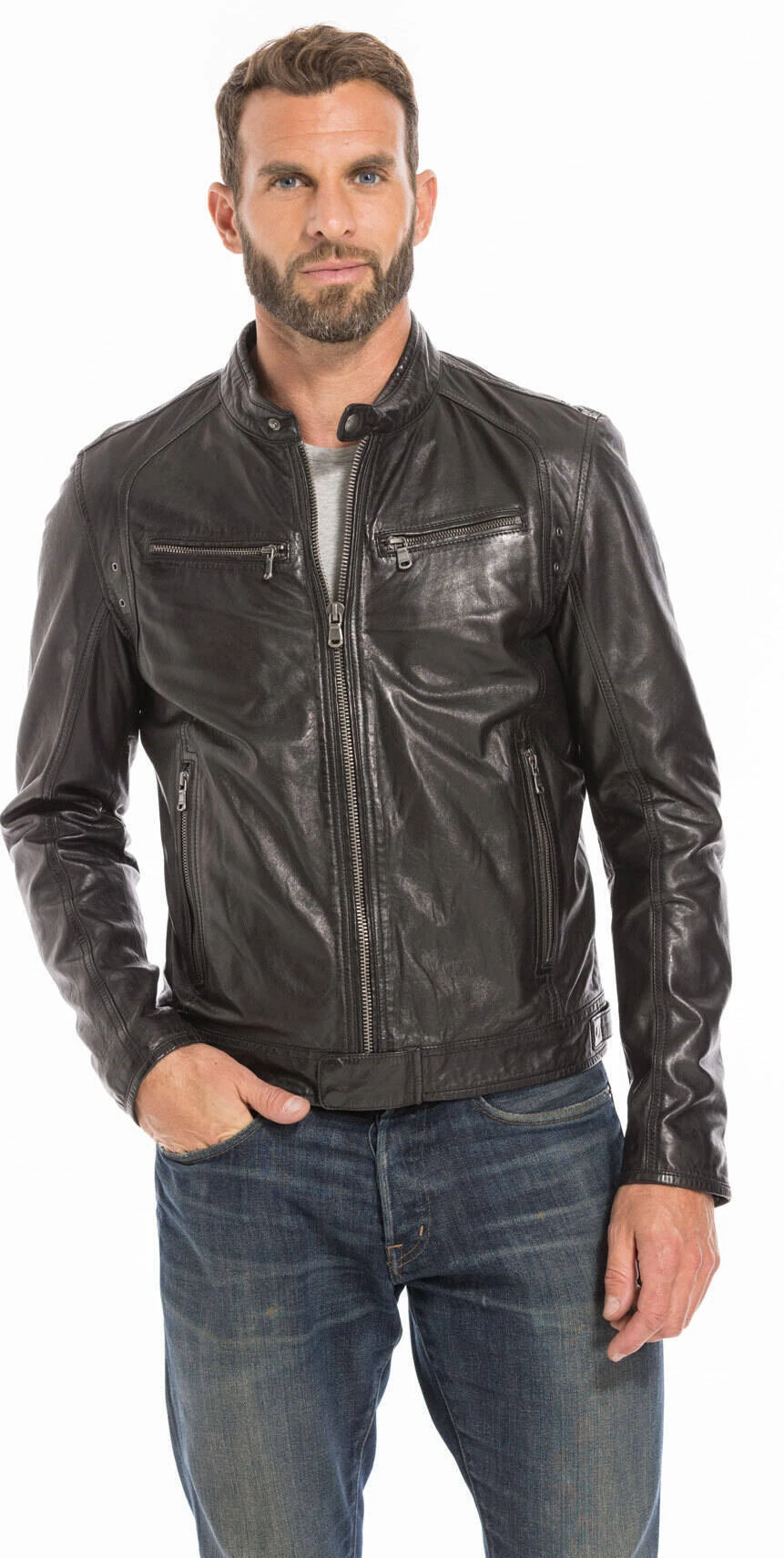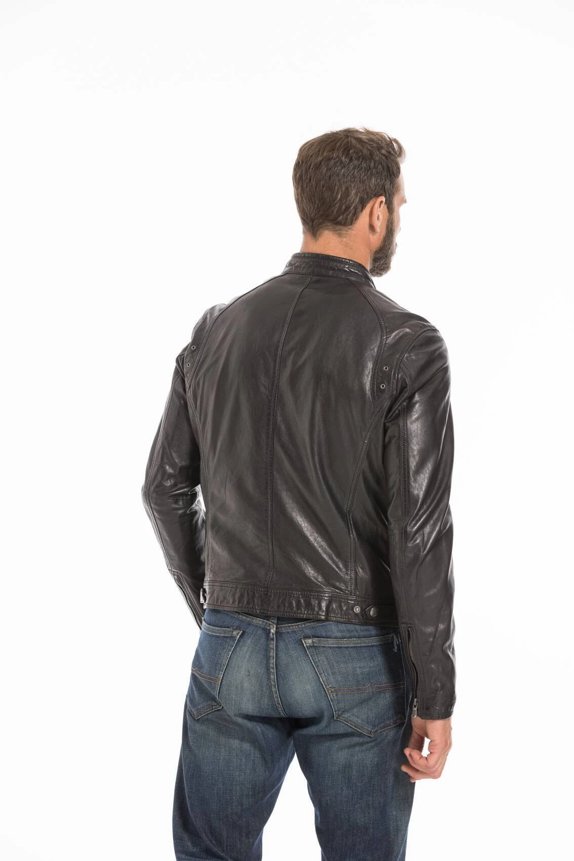 Blouson en cuir d’agneau lavé noir pour Homme de la marque Daytona. On retrouve une coupe style motard avec son col mao à pression très tendance . Révolutionnez votre style et votre apparence en craquant sur ce splendide blouson cuir motard pour homme . Ce blouson vous donnera un véritable coup de jeune et un look bien plus cool quelque soit votre age et votre style . On aime sa couleur noir, passe partout, moderne , intemporel . Très pratique avec sa fermeture centrale, facile à fermer et coupe très bien du vent. Vous avez de nombreuses poches zippées, en effet 2 au niveau de la poitrine et 2 sur le haut des hanches. Il y a un système d’aération sous les emmanchures avec deux rivets sur l’avant et deux sur l’arrière. En bas de manches, on retrouve également une fermeture , au niveau de la taille sur l’avant il y a deux pressions qui cache le bas de la fermeture. Le blouson cuir est très ajusté au corps, il se prête parfaitement à votre morphologie, de plus nous avons des pattes de resserrage au niveau de la taille qui peuvent vous permettre de l’ajuster encore plus ou non . On aime son aspect de cuir patiné, vieilli , un peu plus rigide qu’habituellement qui lui donne un coté plus sport , tendance. Le blouson en cuir est un accessoire de mode qui peut se mettre avec toutes les tenues ou presque. Optez pour un jeans et une belle paire de bottines ou une tenue beaucoup plus décontractée avec des baskets. Au niveau de la doublure, celle ci reste assez fine , elle est en coton et polyester avec 3 poches intérieures ,très pratique pour y ranger vos effets personnels . Ce blouson va devenir la pièce maitresse de votre dressing, intemporel, il va vous suivre pour de nombreuses années. Il fait 62.5 cms de longueur corps sur une taille M , col non inclus . Nous vous proposons ce blouson dans plusieurs coloris, à vous de choisir en fonction de votre style …