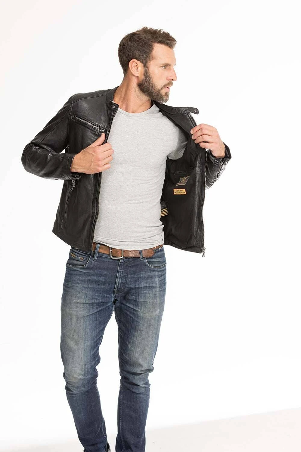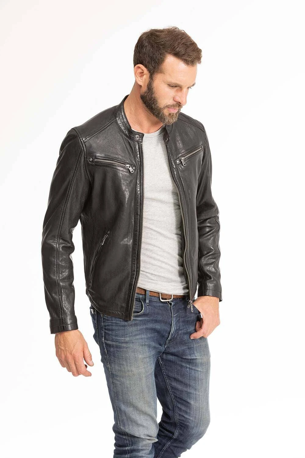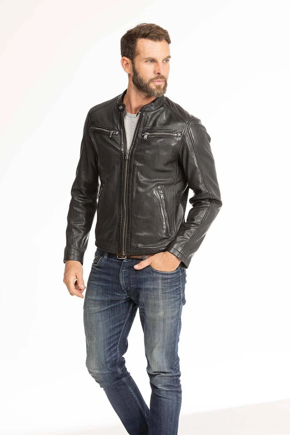 Blouson de cuir en agneau pour homme de la marque Daytona. Il est agréable à porter et est pourvu d’un léger grain qui lui donne un aspect vieilli et vintage. Le col est surmonté d’un col mao style moto et les manches ont une finition avec des fermetures. Le blouson de cuir possède 4 poches extérieures zippées ainsi que 3 poches intérieures : à zip, pression et pour le téléphone. La doublure est en coton au niveau du corps et polyester au niveau des manches.