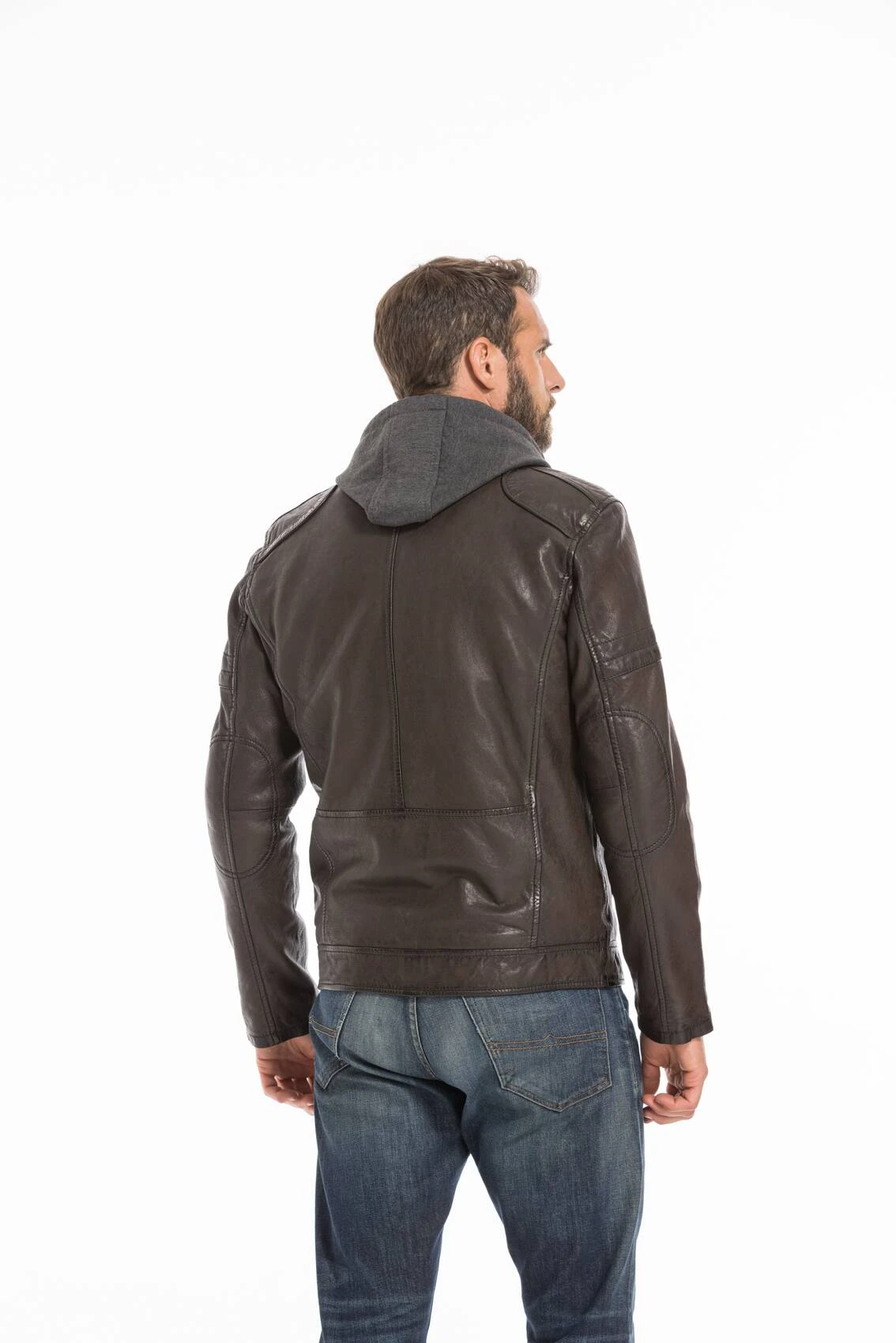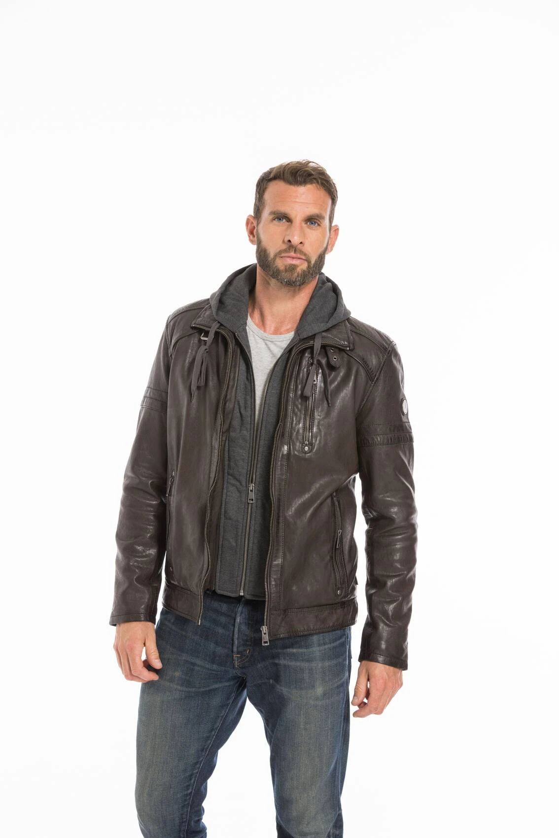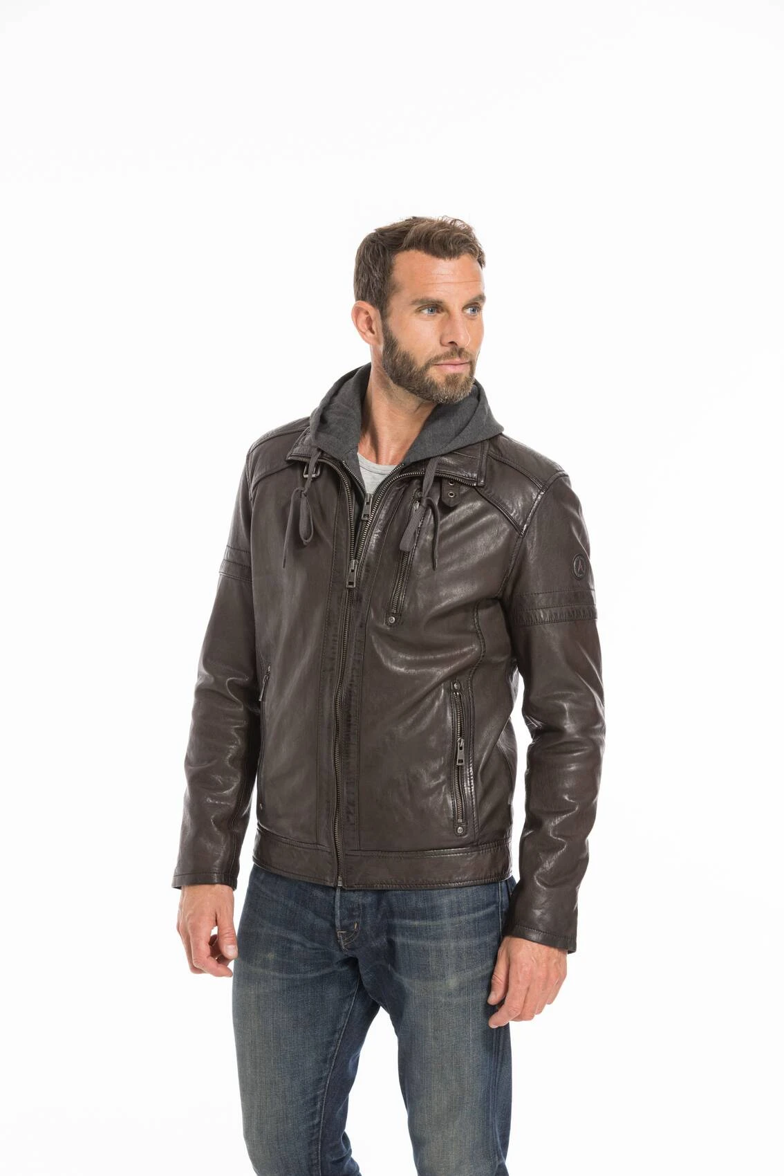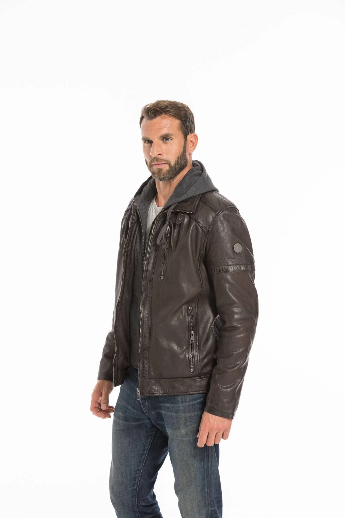 Blouson en cuir d’agneau pour homme dans un style à la fois classique et sport . Sa peausserie d’ agneau est souple, très agréable à porter. Il arbore une capuche en coton amovible. Dans un style tendance sport avec sa capuche et classique une fois celle ci retirée , il trouvera parfaitement son style en fonction de votre tenue. Dans un cuir légèrement patiné, on retrouve pas mal de fantaisie comme son col chemise style « pilote » avec sa patte bouclée, de nombreux empiècements au niveau des épaules et haut des manches. Le blouson cuir possède 3 poches sur l’avant , 1 poche poitrine zippée et 2 poches au niveau de la taille.