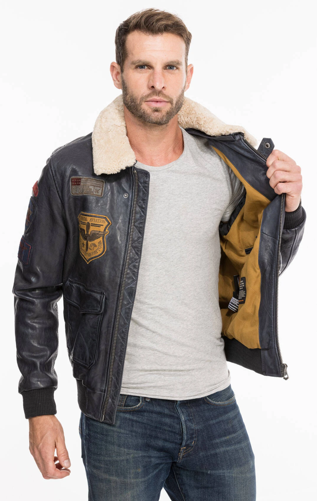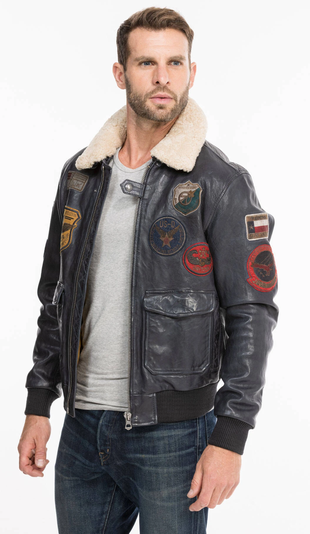 Petite originalité sur ce blouson cuir style aviateur, il possède de nombreux écussons très stylé.