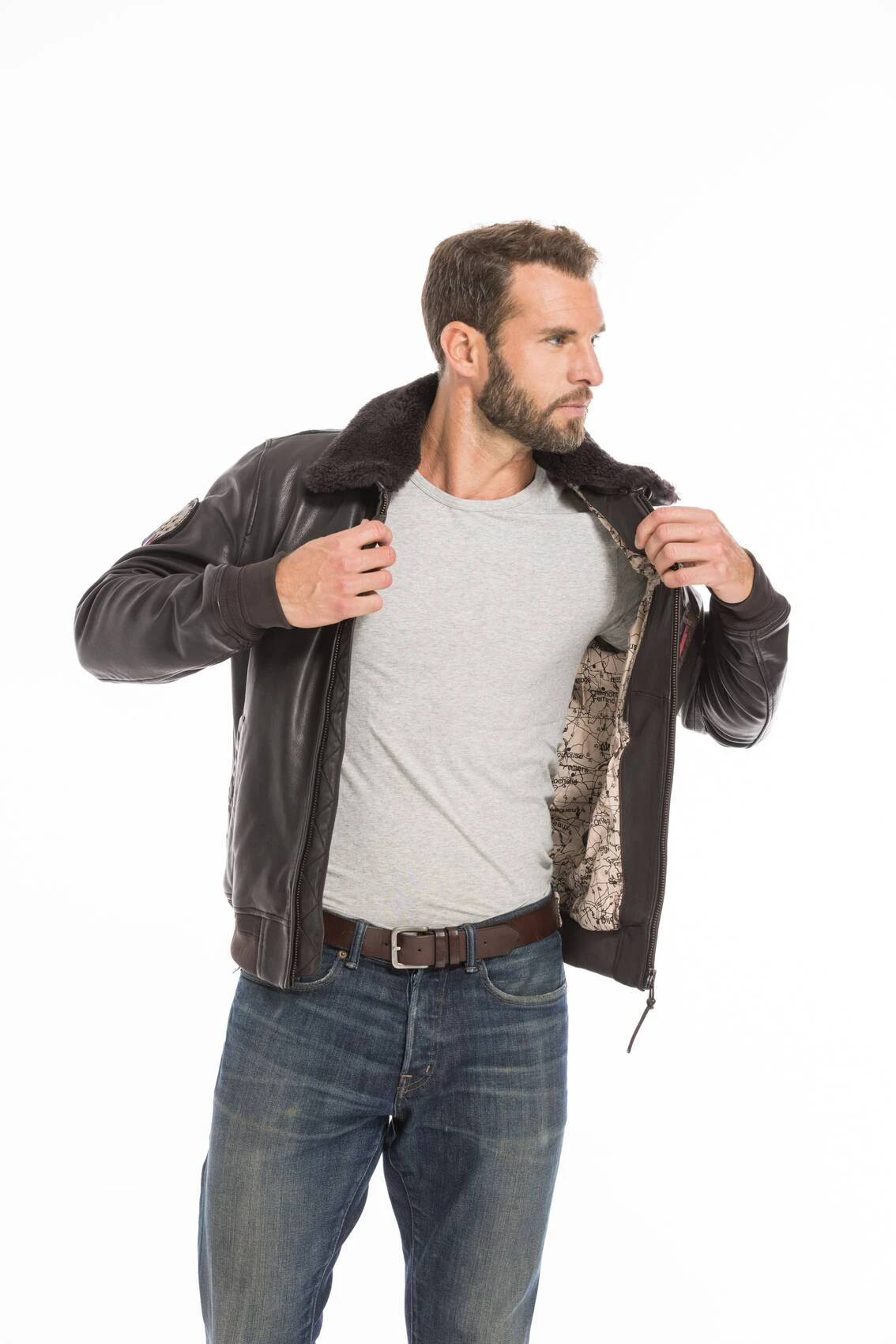 Blouson en cuir d’agneau de la collection Patrouille de France, référence ATHOS ALPHA. Ce blouson cuir est inspiré des uniformes des plus grands aviateurs. Il est doté de bord-côte aux poignets et à la ceinture. Il possède une fermeture à zip et de plusieurs poches à l’avant. Il est confortable, chaud, il sait ajouter de l’élégance à toutes vos tenues. Pour vous assurer un style d’aviateur hors-pair, il est orné d’un col en fourrure amovible et de plusieurs écussons PATROUILLE DE FRANCE.