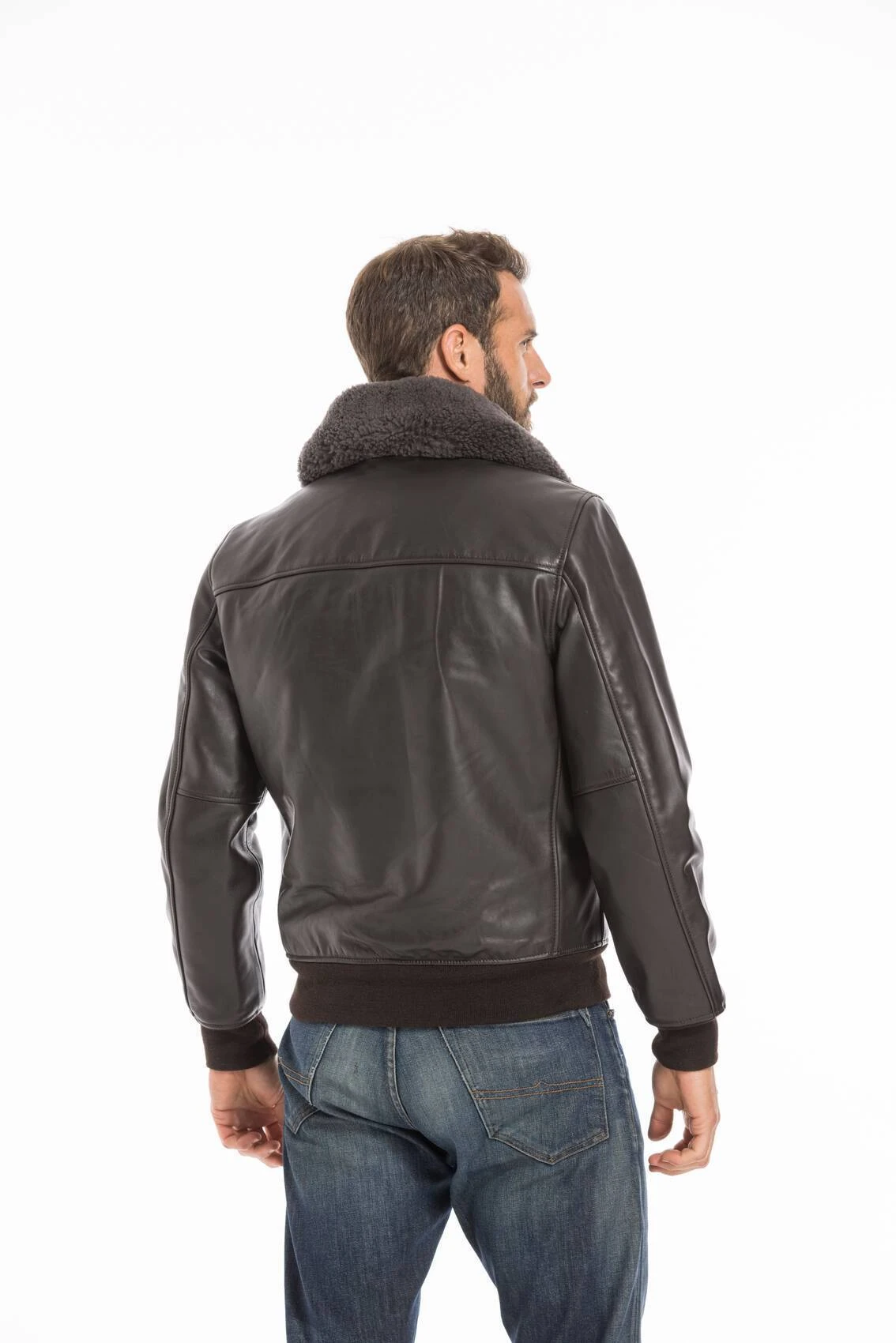 Magnifique blouson en cuir de vachette de la marque Schott. Comment ne pas craquer sur cette coupe style pilote, aviateur pour cet hiver . En effet, ce blouson est l’idéal pour un hiver au chaud. Son cuir est en cuir de vachette, qui coupe très bien du vent, garde la chaleur du corps et il est très robuste . Le grain de peau est dans son ensemble régulier et homogène mais sachez que le cuir est une matière noble, il n’est pas rare de trouver quelques marques, cicatrices, etc . Vous allez peut être trouvé au début votre blouson un peu trop lourd mais sachez que celui ci va s’assouplir au fur et à mesure des ports pour plus de confort . Le blouson cuir est assez court, il ne couvrira pas vos fesses, cependant, le bord-côte vous isolera très bien du froid. Au niveau du cou , nous avons un col en fourrure de mouton amovible grâce à des petits boutons qui s’insèrent dans des passants et maintenu par des pressions , qui une fois retiré laisse découvrir un col chemise cuir. Vous disposez d’une fermeture par zip centrale, pratique et plus couvrant. On retrouve des doubles poches biais , l’un est zippée et l’autre qui se ferme avec un pression. Elles sont toutes doublées polaire et garderont vos mains au chaud. Petite fantaisie avec sa poche poitrine zippée. Sinon , nous avons bien entendu les fameux bords côtes en tricot au bout des manches et bas du corps, qui isolent du froid et assurent un bon maintien de la manche . La doublure du corps en nylon est amovible pour laisser apparaitre une simple doublure polyester .C’est un blouson qui s’accorde très bien avec toutes vos tenues , jeans, chemise, tee shirt,etc.