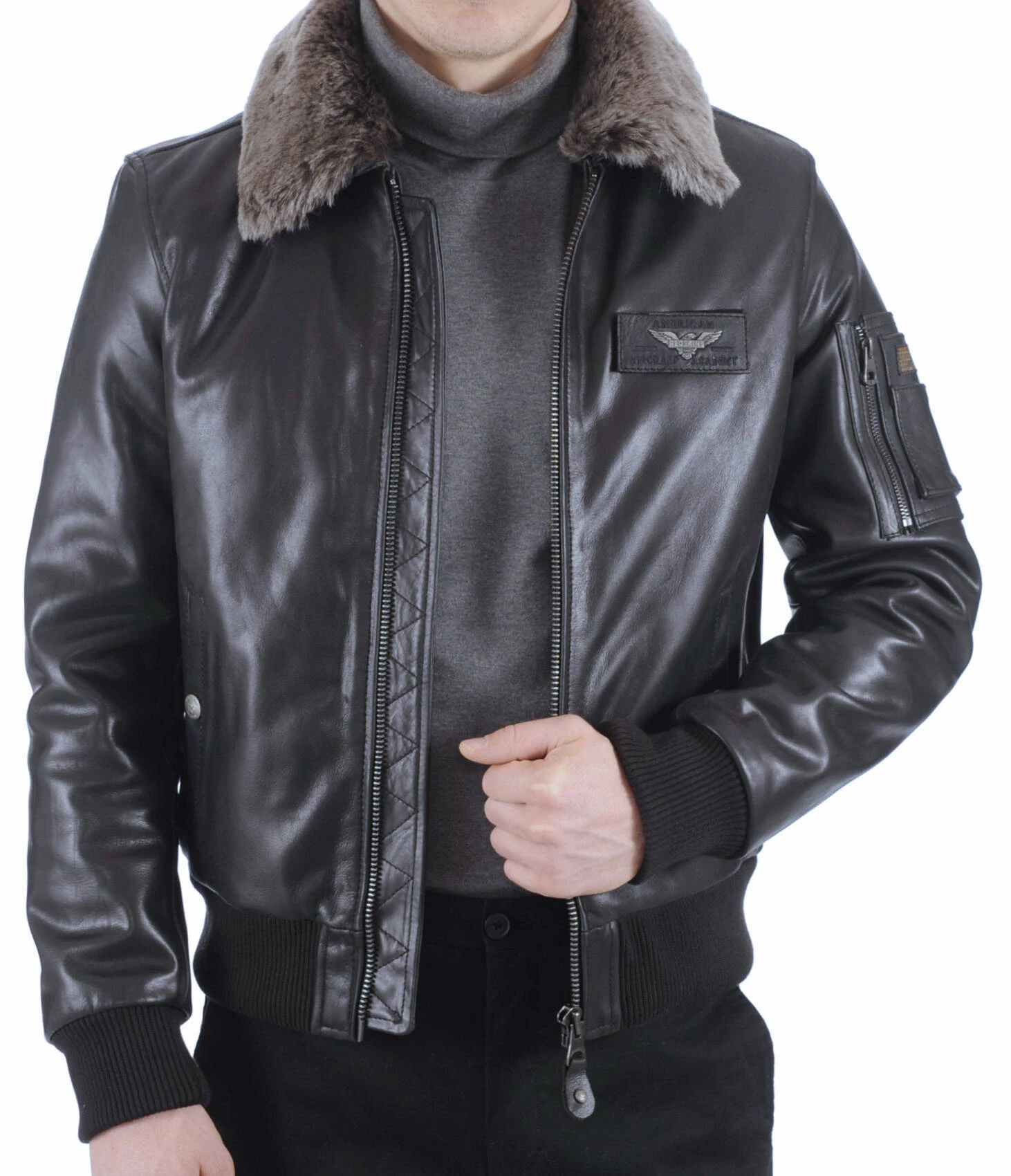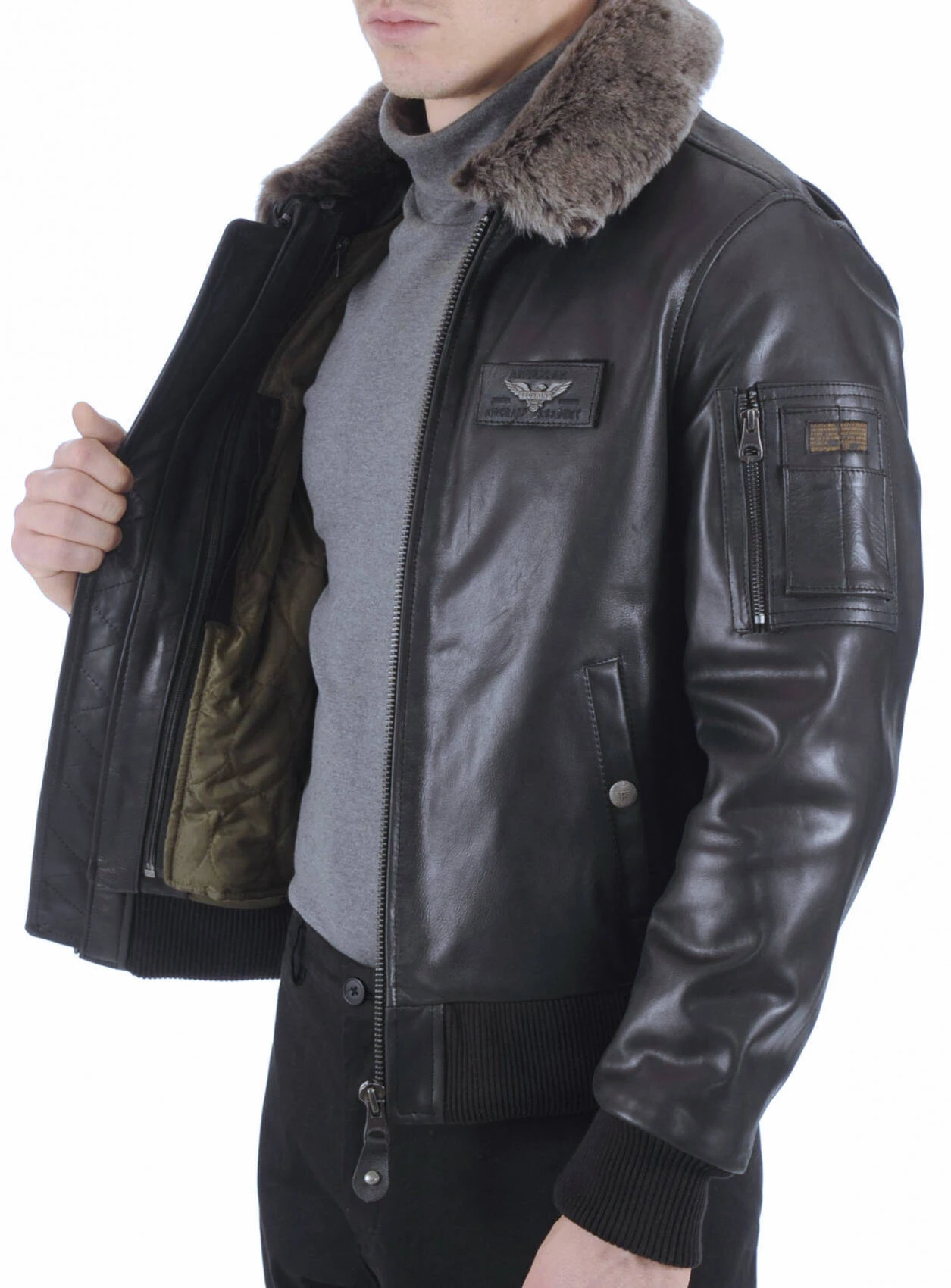 Blouson en cuir de vachette pour homme dans un look tendance style pilote aviateur .Ce blouson en cuir est hyper polyvalent, il pourra s’adapter à l’ensemble de votre dressing, il peut très bien être porté sur un tee shirt, ouvert ou encore sur un pull en V, une chemise basique .Il est très agréable et confortable à porter, avec des finitions parfaites,ce blouson deviendra indispensable à votre dressing.Vous retrouvez un petit col en fourrure amovible, chaud, tendance hiver .Son col fourrure se retire à l’aide d’une fermeture sur le dessus et de petits boutons pour laisser apparaitre une fois retiré un col chemise classique. Quoi de plus idéal pour l’hiver c’est très doux et chaud, pour la belle saison vous le retirez pour avoir un blouson cuir plutôt intersaison. Le blouson a un col chemise droit, se ferme à l’aide d’une fermeture centrale, très pratique et facile à fermer .Ce blouson cuir fait 63 cms de longueur corps de la base du col au bas. Pour le coté pratique, vous disposez de deux poches biais à pression, si vous aimez mettre vos mains dans les poches, celles ci sont idéales afin d’éviter de déformer le cuir .On retrouve sur ce blouson cuir de forme aviateur les fameux bords côtes élastiques aux manches et à la taille qui empêche l’air de s’infiltrer et ainsi de mieux vous tenir chaud. Vous disposez d’une doublure légèrement ouatinée, agrémentée de plusieurs poches , vous avez une poche zippée, une poche pression, idéal pour vos effets personnels .Ce blouson cuir fait partie du top vente, jeune ou moins jeune, ce blouson cuir vachette n’attend que vous, comment ne pas craquez sur sa coupe intemporelle, de plus il s’adapte à toutes les morphologies. A porter sur des bottes, une grosse maille et un bon jean brut.