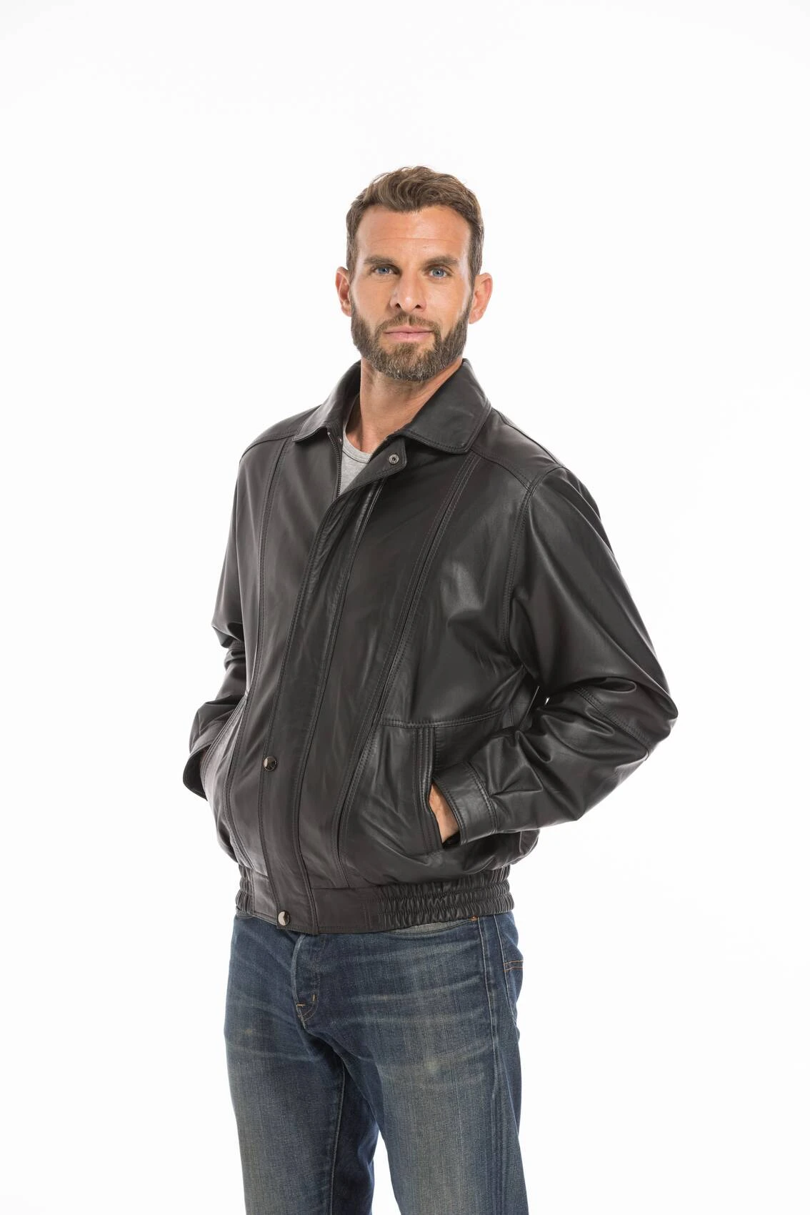 Sobre et élégant , voici un splendide blouson en cuir d’agneau noir pour homme. On retrouve ici un blouson cuir classique, intemporel, il fait parti du top vente depuis plusieurs collections . On apprécie tout particulièrement la souplesse de son cuir, extrêmement fin tout en gardant une bonne tenue du cuir . Son cuir d’agneau est teinté, aspect lisse, son coloris noir, classique est facile à associer à toutes vos tenues, on ne s’en lasse pas au fil du temps . Le blouson cuir noir possède un col chemise droit, une fermeture éclair par zip centrale cachée par une patte avec pressions pour beaucoup plus de classe. Vous avez deux poches biais très discrètes, un poignet avec pressions sur le bas de manches. Le blouson cuir a une forme blousant, corps ample, très confortable car vous retrouvez un élastique cuir au niveau de la taille. Il y a un joli travail d’apporté à ce blouson cuir marron avec ses petites surpiqures, empiècements mais toujours tout en sobriété. Ce blouson cuir se rend indispensable à votre garde robe, il s’adapte à toutes situations. Vous le porterez aussi bien sur un jeans, que sur un pantalon plus classique. Nous vous proposons ce blouson cuir également en coloris marron fonce , à vous de choisir .