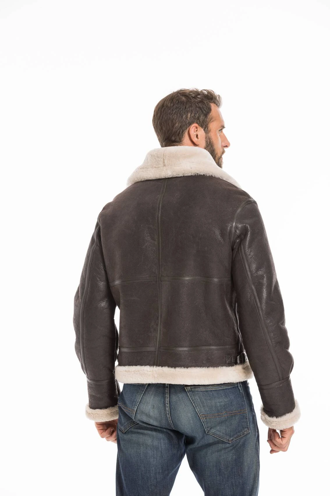 Porté par les pilotes et les parachutistes américains durant la Second Guerre mondiale, le bombardier est un blouson chargé d’histoire. Ce bombardier en mouton est de la marque Cuirs Guignard , c’est un incontournable de leur collection . Le bombardier mouton a été conçu pour résister aux conditions extrêmes. Afin de mieux les protéger, le bombardier est fabriqué en mouton retourné, c’est-à-dire en peau de mouton doublée avec sa propre fourrure. Idéal pour passer l’hiver et les fraiches soirées avec sa laine qui coupe du vent, garde la chaleur du corps, quoi demander de plus chaud qu’une peau de mouton !! De plus le blouson Bombardier se ferme grâce à une fermeture zippée donc impossible pour le froid de s’y glisser, pas de coup de froid c’est assuré . Il est très confortable et agréable à porter même si c’est vrai le mouton fait un certain poids . Il est doté d’un très large col, de poignets et d’une taille fourrée. Vous pouvez ajuster votre blouson grâce à ses pattes de resserrage au niveau des hanches. Sous le col, vous retrouvez deux boucles et ses deux pattes à rivets. Vous avez des bandes de cuir lisse marron foncé, une finition impeccable. Idéale pour toutes les morphologies avec sa coupe droite, confortable, intemporel .On vise un look élégant ou décontracté, il s’adapte à tous les styles , toujours aussi tendance , on aime son coté vintage .L’aspect extérieur de la peausserie est légèrement vieilli, ce qui donne beaucoup de cachet à cette pièce .Essayez ce bombardier c’est l’adopter, c’est une pièce indispensable pour votre garde robe . Ce bombardier Cuirs Guignard mesure 61 cms de longueur corps sur une taille M , c’est à dire de la base du col au bas du vêtement.