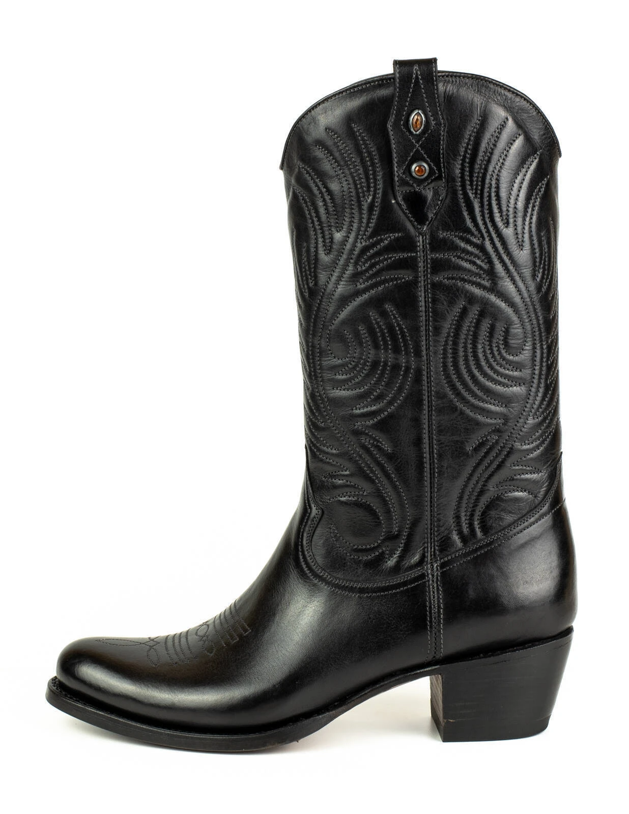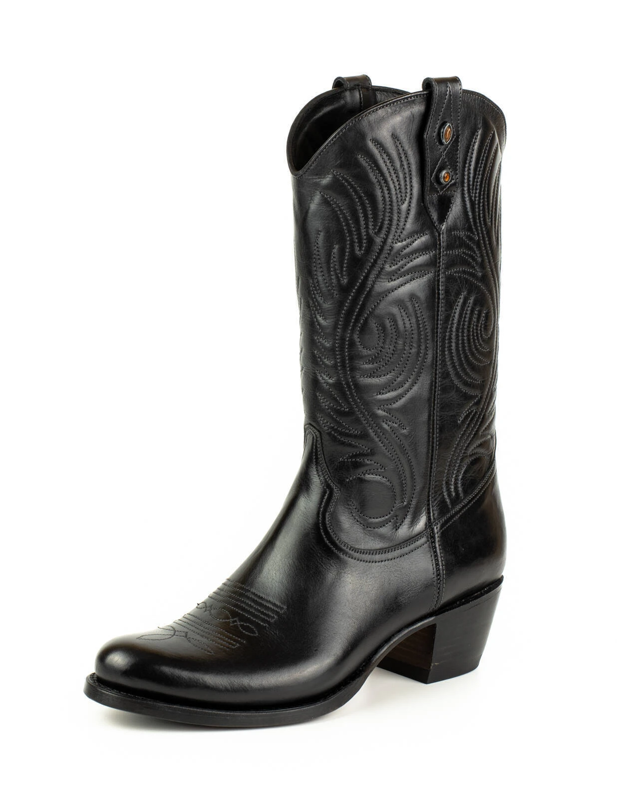 On retrouve ici un modèle de la collection Mayura . Il possède un bout arrondie ,dans un look bohème , à la mode. Son talon fait 53 mm avec une bonne base, ce qui en fait une botte confortable à porter. Fabriqué avec du cuir et une doublure en cuir de vachette souple au toucher agréable, la semelle intérieure est rembourrée pour plus de confort. Vous pourrez ainsi les porter toute la journée et la semelle en cuir est faite à la main avec le système de couture GOODYEAR, qui garantit la durabilité de la chaussure et un excellent confort.
