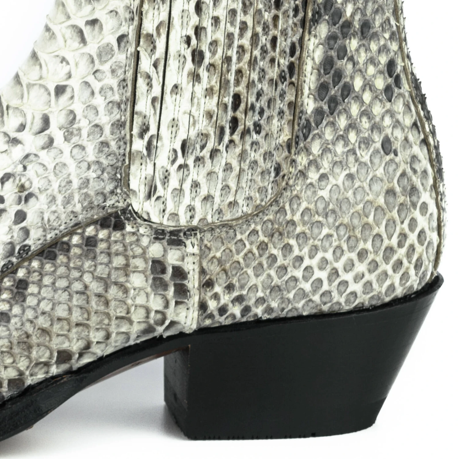 Boots en cuir pour femme de la marque Mayura. On craque sur ces splendides bottes en peau de python authentique. Elles sont entièrement fabriquées à la main avec une semelle en cuir et piquées avec le système GOODYEAR . Elles sont agréablement confortable, stylé , véritable accessoire de mode. Comptez une hauteur de talon de 5 cms. Très facile à enfiler avec ses élastiques sur le haut .Nous vous proposons également la ceinture assortie aux bottes pour un look optimal , vous la retrouvez dans la partie accessoire femme réf 315