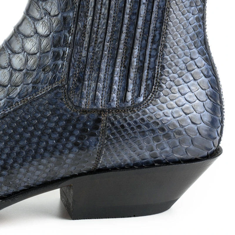Boots en cuir pour homme de la marque Mayura. On craque sur ces splendides bottes en peau de python authentique. Elles sont entièrement fabriquées à la main avec une semelle en cuir et piquées avec le système GOODYEAR . Elles sont agréablement confortable, stylé , véritable accessoire de mode. Très facile à enfiler avec ses élastiques sur le haut .