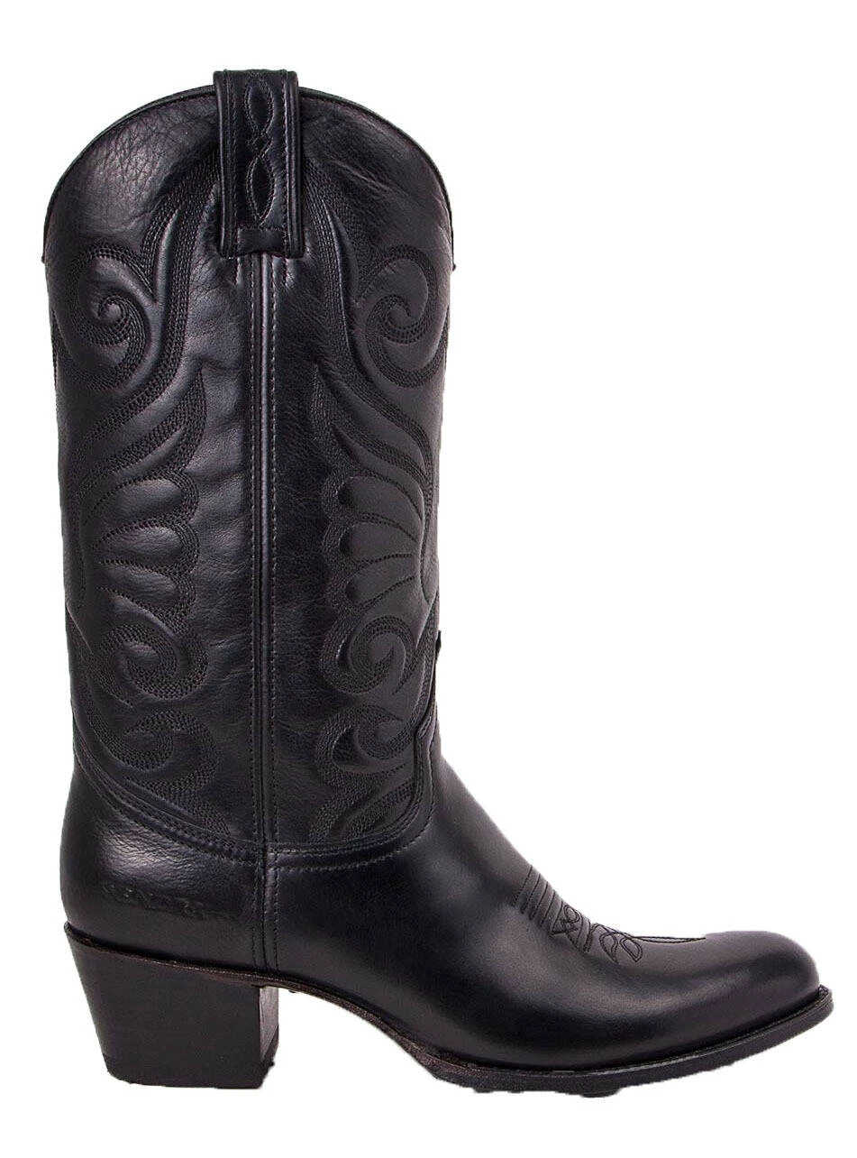 Bottes en cuir de la marque espagnole Sendra boots . On garde un look bottes cowboy, western mais en étant très féminine. Sa pointe est plutôt ronde, le talon est presque droit, façon cubain . L’intérieur des bottes est entièrement en cuir, très confortable et de bonne qualité . La semelle est cousue selon le procédé goodyear , tout en cuir également . Vous avez des tires oreilles sur le haut de la tige pour vous aider à bien les enfiler . Toute la tige est joliment travaillé, avec ses dessins, surpiqué, ton sur ton . Il faut rester sur votre pointure habituelle, attention , si toutefois , vous avez un fort coup de pied, n’hésitez pas à monter d’une pointure .