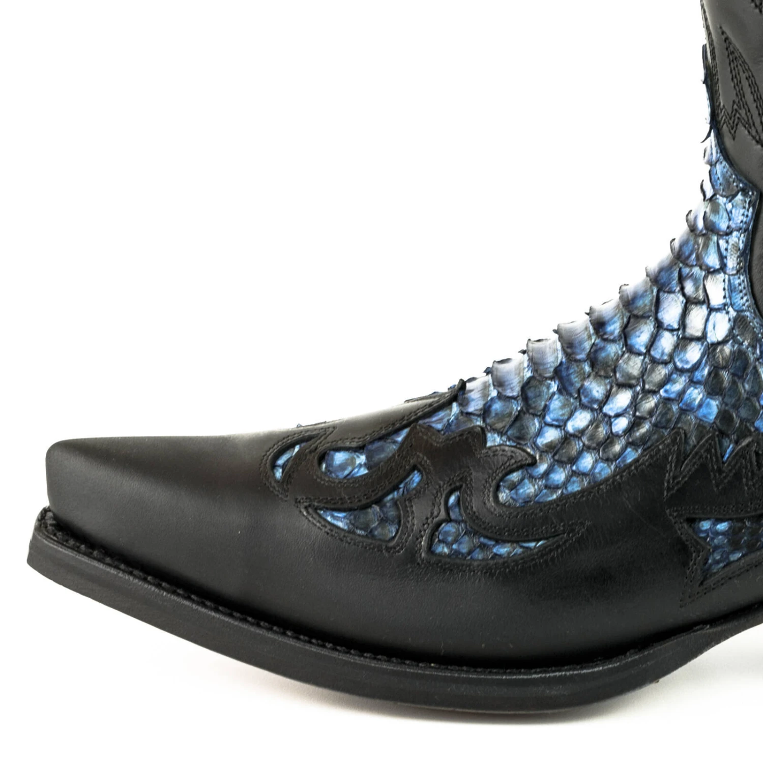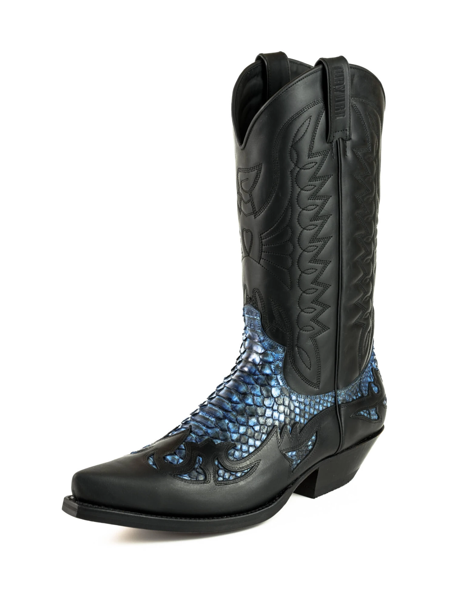 On craque sur ces splendides bottes de la marque Mayura. Stylée avec son dessus de pied en peau de python naturel. Elle est en cuir de vachette huilé de qualité supérieure. Les bottes ont une double semelle en cuir, elles sont fabriquées à la main avec le système de couture reconnu GOODYEAR, qui garantit la durabilité de la chaussure et un excellent confort.Le talon est légèrement biseauté et fait une hauteur de 4cms. Le résultat est une botte de cowboy spectaculaire qui est un incontournable.