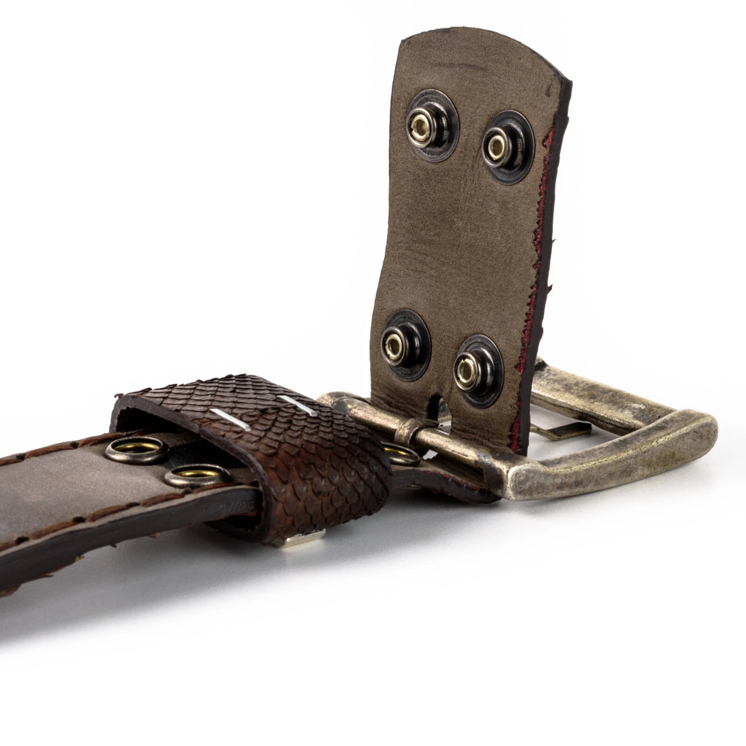 Ceinture exotique en cuir véritable de crocodile et python . Comptez une largeur de 4 cms . La boucle est amovible par un système de pressions.