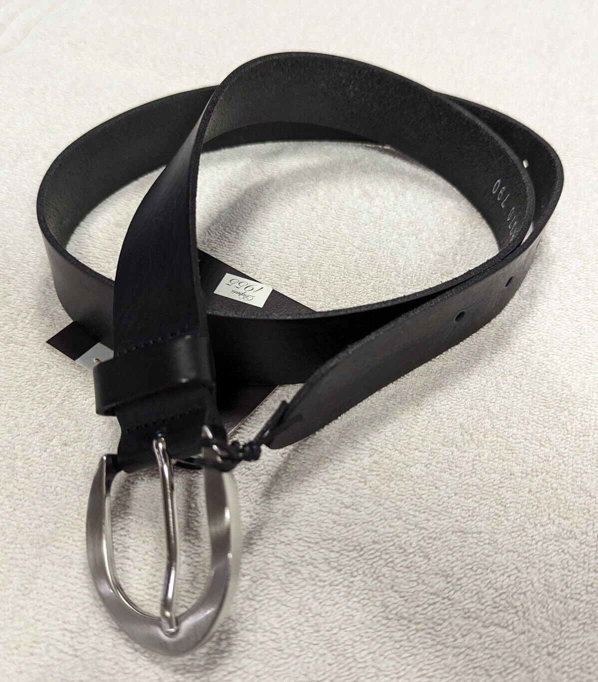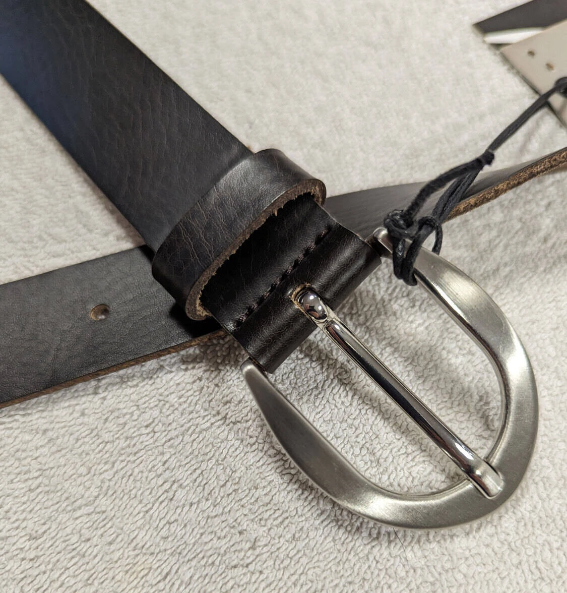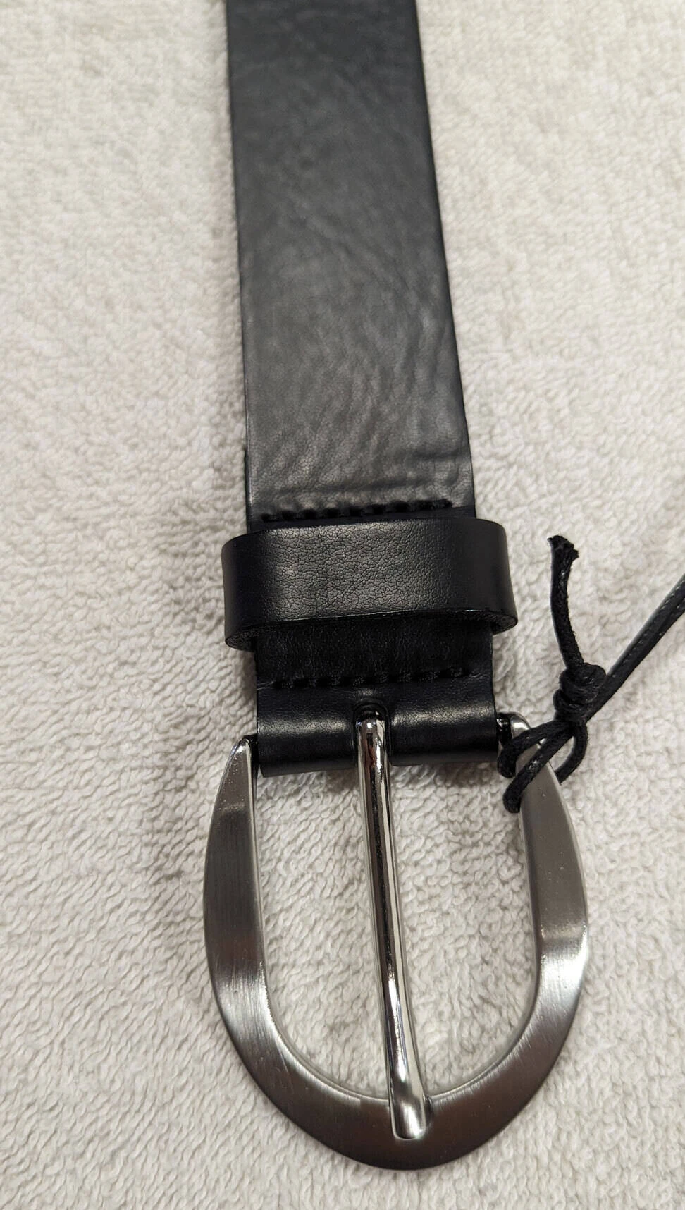 Ceinture cuir femme noir, boucle arrondie de couleur argent , un passant, sans surpiqures, très souple