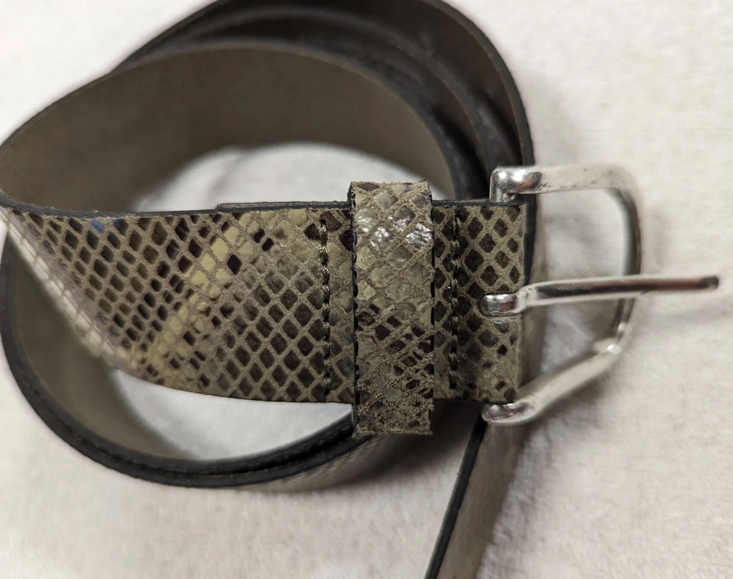 Ceinture cuir femme vachette olive, boucle de couleur argent, on aime son aspect cuir travaillé façon python