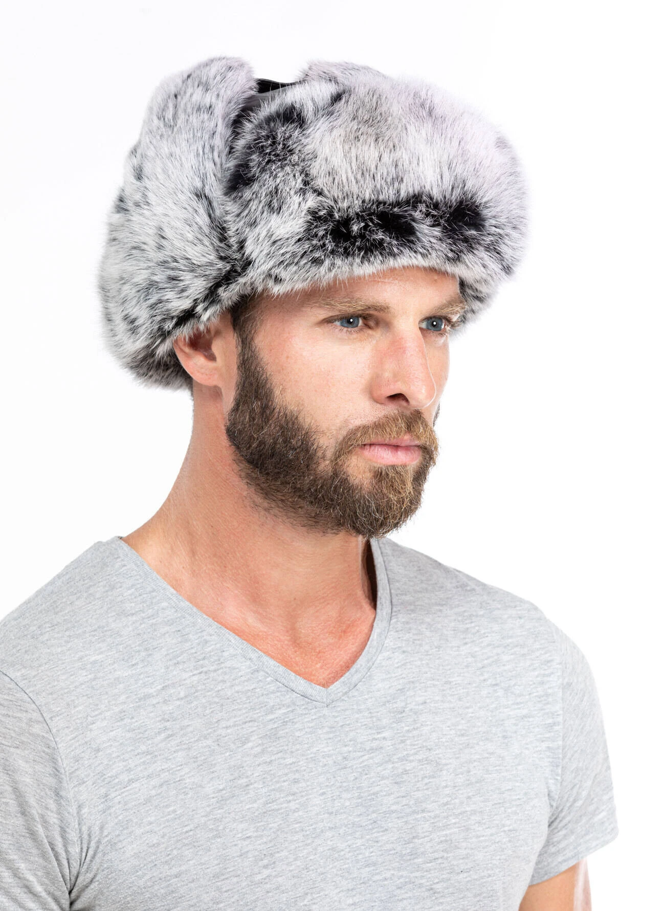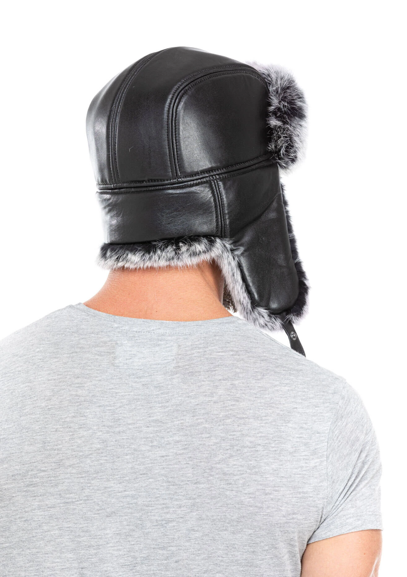 Superbe chapka en cuir d’agneau et fourrure lapin unisexe dans un coloris noir / gris . La visière devant est cousue, vous avez un système de pressions si vous préférer rabattre les oreilles sur le haut .L’extérieur est donc en cuir d’agneau noir lisse et en fourrure de lapin au niveau de la visière et des oreilles . Vraiment confortable, très chaude .