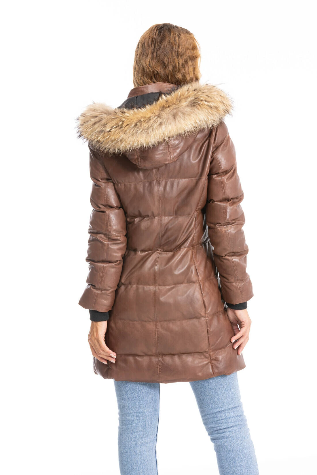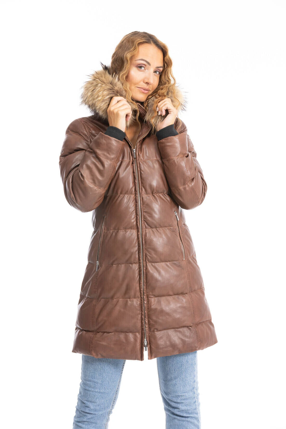 Doudoune longue pour femme , elle est fabriquée en cuir d’agneau , fin et souple . Elle possède une capuche amovible zippée avec une bordure en fourrure véritable. Elle associe parfaitement confort et élégance, vous ne pourrez plus vous passez de cette doudoune longue cet hiver . Vous avez un col montant assez large, une fermeture centrale zippée. Sur l’avant , il y a 2 poches zippées, sa doublure est 100 % polyester Thermocore avec une poche intérieure zippée