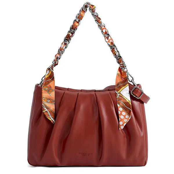 Découvrez le grand modèle du nouveau sac porté épaule Béatrice de Fuchsia Paris sur notre maroquinerie en ligne ! Ce magnifique sac à main en cuir synthétique au toucher si lisse qu’il en est extrêmement doux, vous séduira grâce à son allure tendance. Tout droit sorti de la collection Automne Hiver 2022 ce sac Fuchsia se distingue des autres grâce à son anse en chaine dans laquelle est tressé un ruban type foulard. Ce sac porté épaule Fuchsia au look bohème saura conquérir les femmes à la recherche d’un sac expressif, mode et élégant ! Le sac Fuchsia Paris dispose d’une organisation bien pensée. En effet, vous trouverez à l’intérieur du sac Fuchsia deux compartiments de rangements séparés par une grande poche zippée pour y glisser tous vos essentiels. De plus, le sac Fuchsia Paris est équipée d’une poche zippée intérieure et de deux poches plaquées pour vous organiser comme vous l’entendez. Petite surprise Fuchsia Paris : retrouvez à l’intérieur du sac porté épaule Fuchsia une bandoulière ! Ainsi, vous pouvez porter ce magnifique sac Fuchsia à l’épaule ou de travers ! La bandoulière Fuchsia est réglable et amovible.