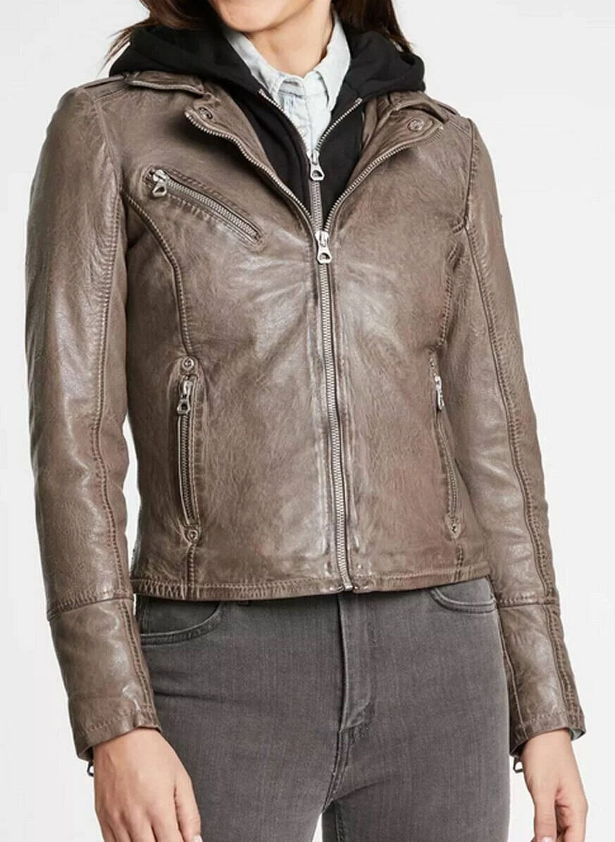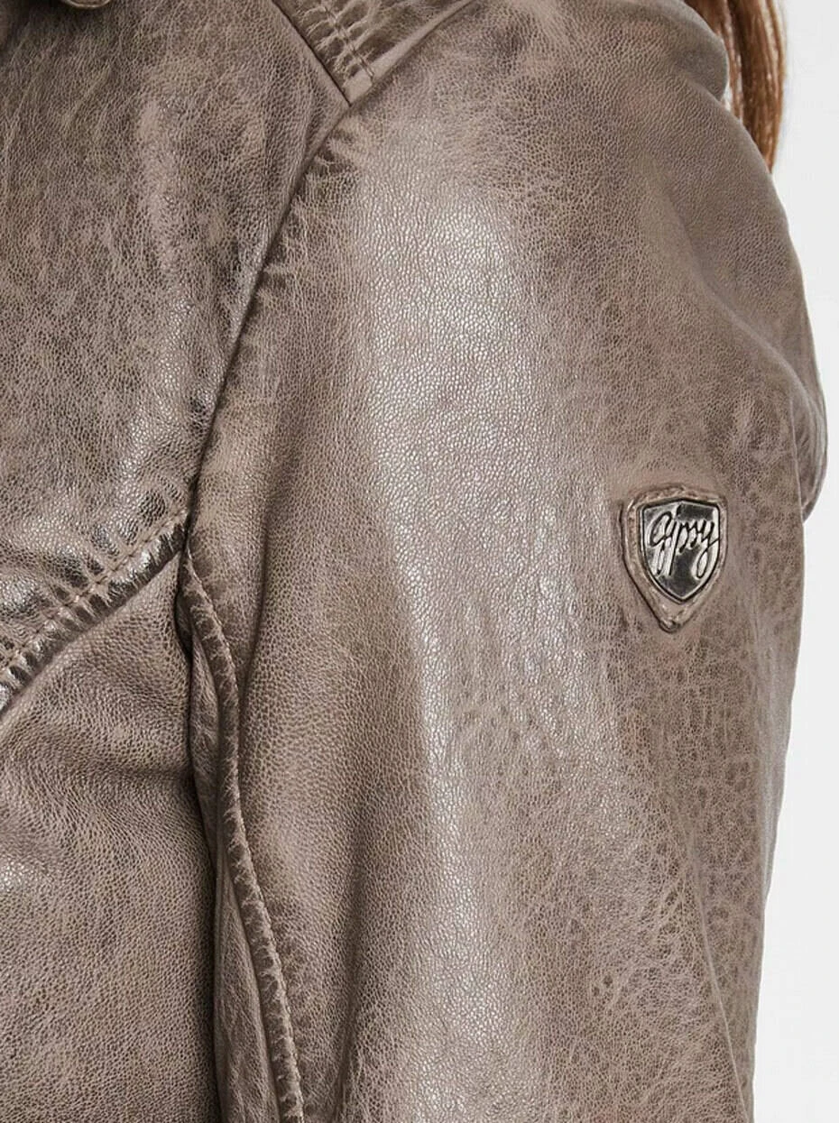 Blouson cuir en agneau pour femme de la marque Gipsy. On retrouve une coupe cintrée et un style biker reconnaissable avec son col tailleur avec pressions et sa fermeture éclaire centrale, ses pattes d’épaules et ses zips en guise de finition sur l’arrière des manches. Vous retrouvez sur le blouson cuir 2 poches zippées en biais au niveau de la taille et une à la poitrine ainsi qu’une capuche amovible. La doublure est en coton pour le corps et polyester pour les manches. Il faut compter une longueur de corps de 54 cm pour une taille M.