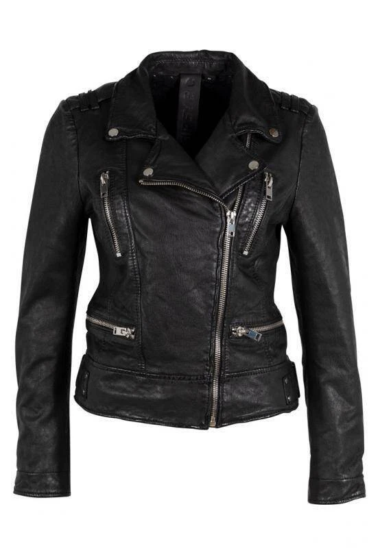 Blouson de cuir en agneau noir pour femme de la marque Gipsy. On retrouve une coupe biker avec son col tailleur avec pressions, sa fermeture asymétrique et ses pattes d’épaules. Le blouson cuir d’un style Perfecto en référence à la marque Schott est très tendance et indispensable dans votre garde robe, il saura vous séduire avec tous les accessoires et finitions (fermetures, zipps, poches…). La doublure est en coton pour le corps et polyester au niveau des manches, on retrouve une poche intérieure. La coupe est slim et est idéal pour les 2 saisons. Comptez une longueur de corps de 52 cm pour une taille S.