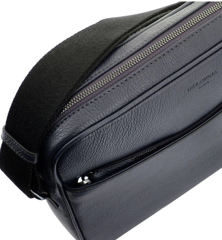 Besace en cuir de vachette de la marque Hexagona . On aime sa ligne minimaliste et urbaine, rehaussée d’un cuir grain buffle. Cette petite besace incarne l’homme moderne chic.