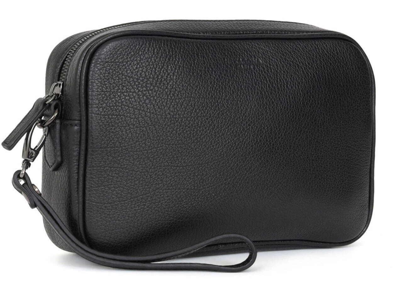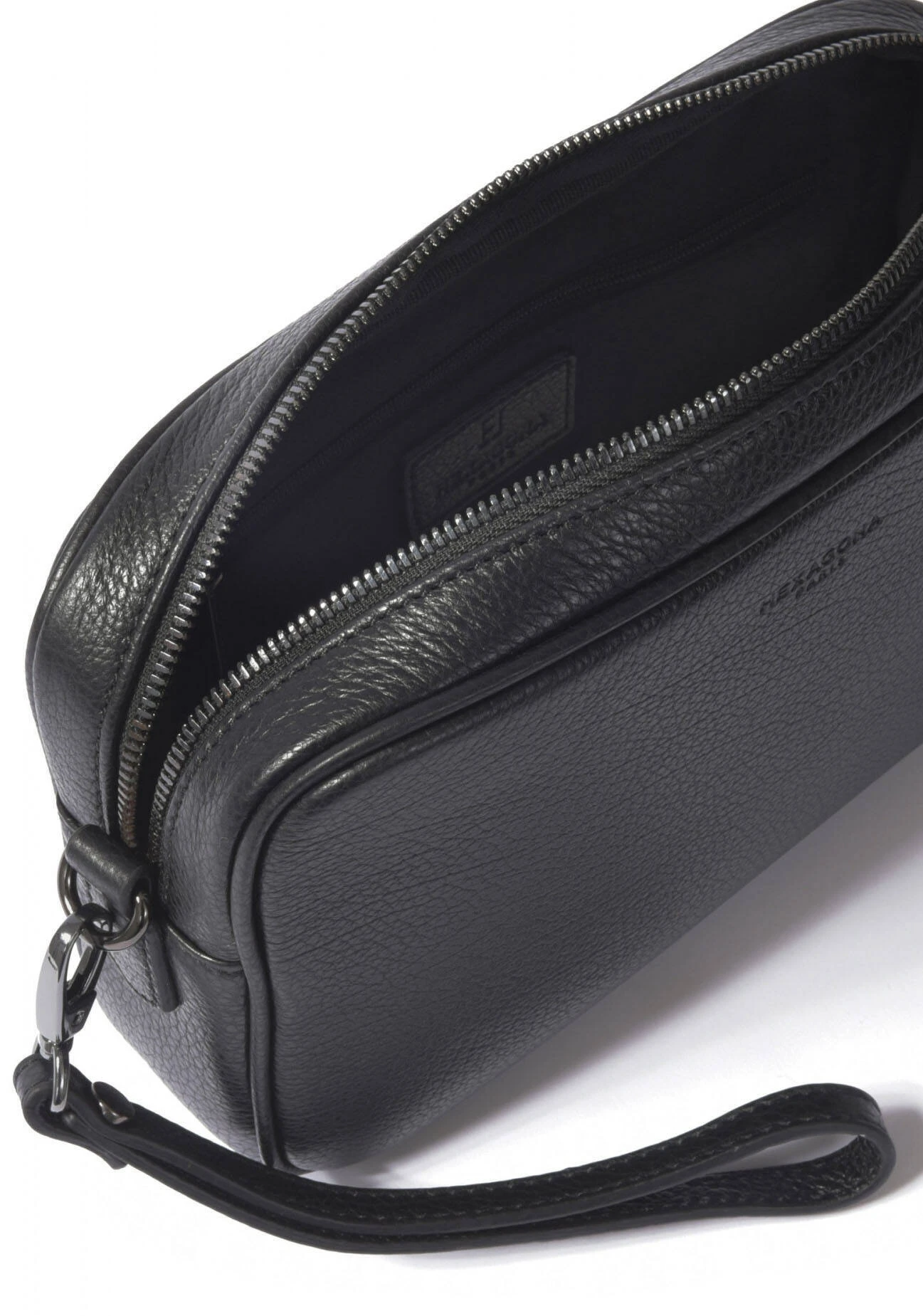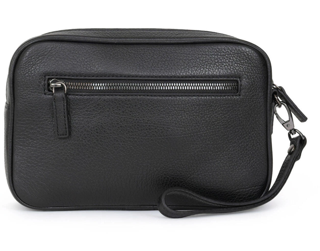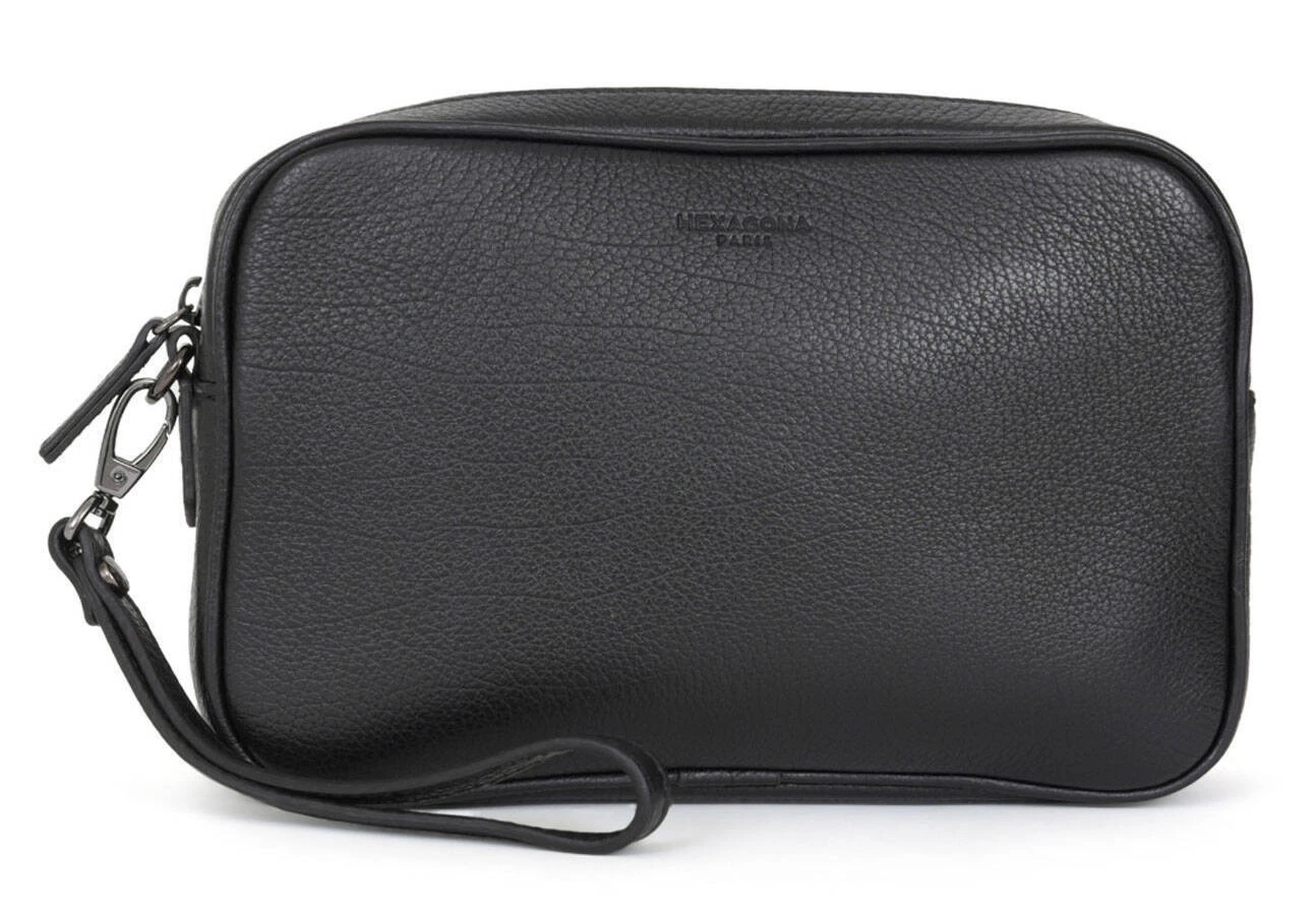 Pochette dragonne en cuir de vachette aspect grain buffle de la marque hexagona. Très sobre, une ligne assez sport qui convient à toutes générations. Pratique pour vos sorties et/ou week end . Cette pochette cuir se ferme à l’aide d’un zip, elle est entièrement doublée, sous le dessus , vous avez des finitions canons de fusil pour protéger le cuir . Sur l’Extérieur : on lui retrouve Une poche arrière plate zippée et à l’Intérieur , il y a Un compartiment principal avec une poche plate zippée et une poche plate. Sa dragonne est amovible et fait environ 36 cm.