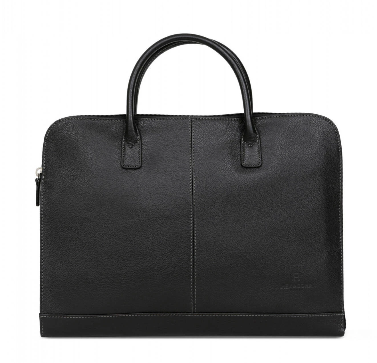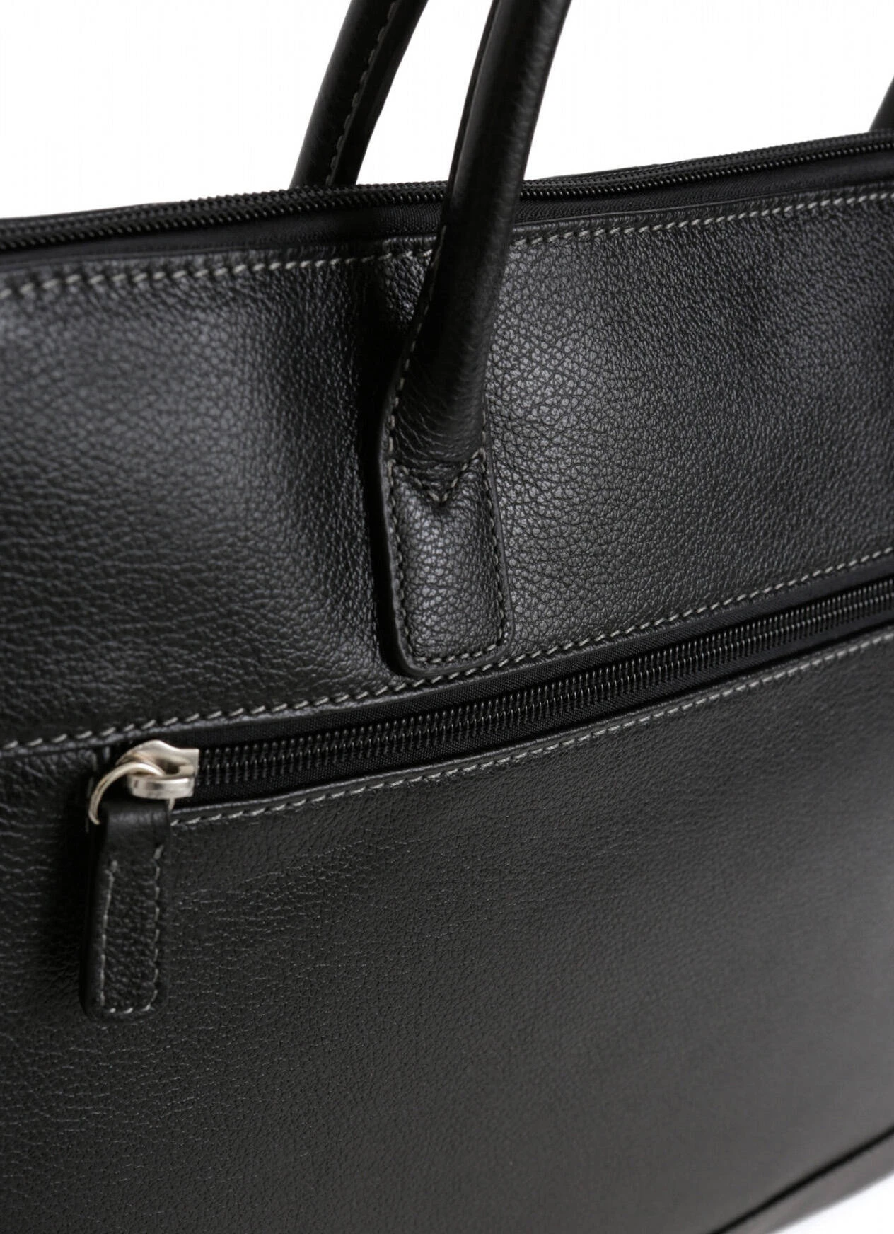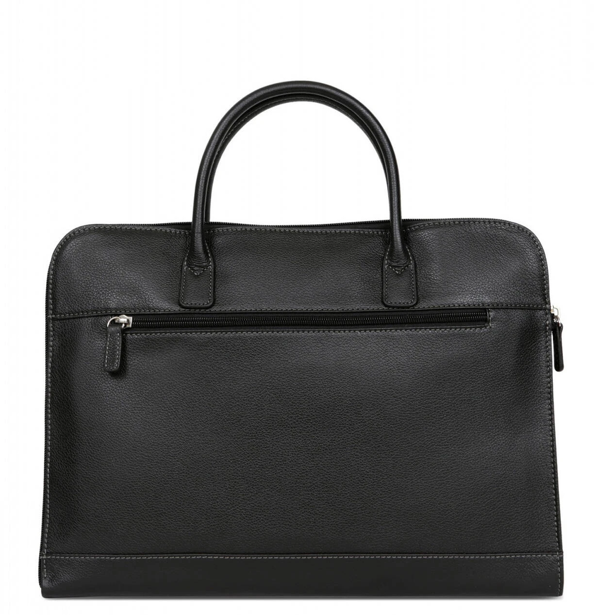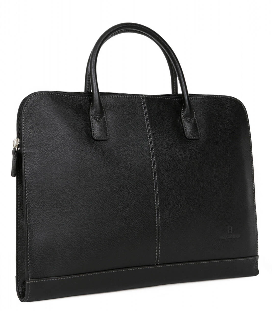 Porte-documents A4 en cuir de vachette grainé entièrement doublé synthétique . Il possède une Fermeture zippée, ses Finitions sont de couleur argent. Sur l’Extérieur, vous retrouvez une poche arrière plate zippée. A l’Intérieur , il y a un compartiment principal avec une poche plate zippée et deux poches plates (dont un compartiment téléphone). Ce sac est Compatible format A4, il a Deux poignées qui sont non réglables (36 cm).