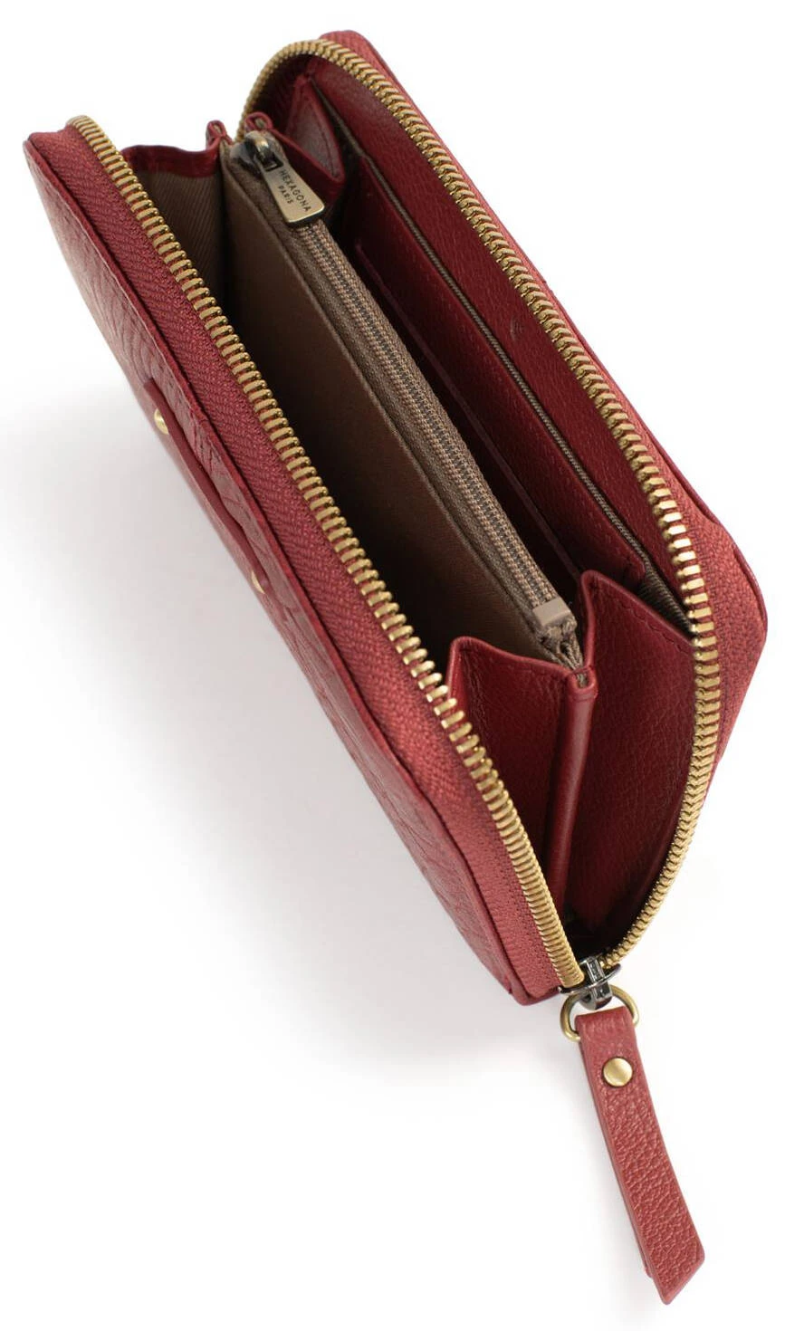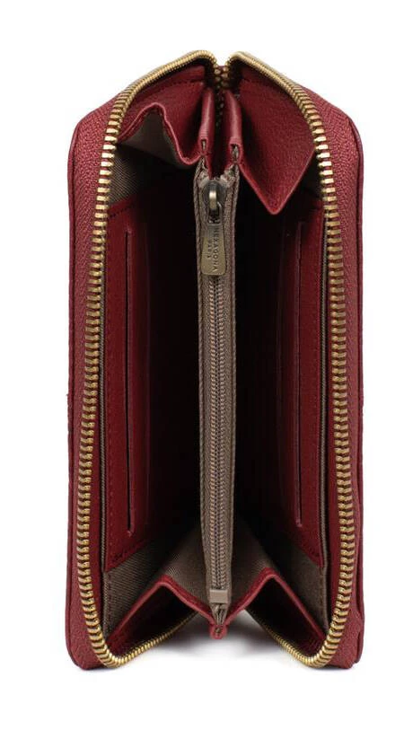 Portefeuille en cuir de mouton garni cuir de vachette grainé nervuré qui apporte souplesse et élégance. IL possède une fermeture zippée, des finitions couleurs bronze.Il dispose de la technologie stop RFID.Vous avez 1 compartiment principal. 1 porte-monnaie zippé. 4 poches plates. 6 emplacements carte.Il est Compatible cartes de crédit, CNI, permis de conduire et carte grise.