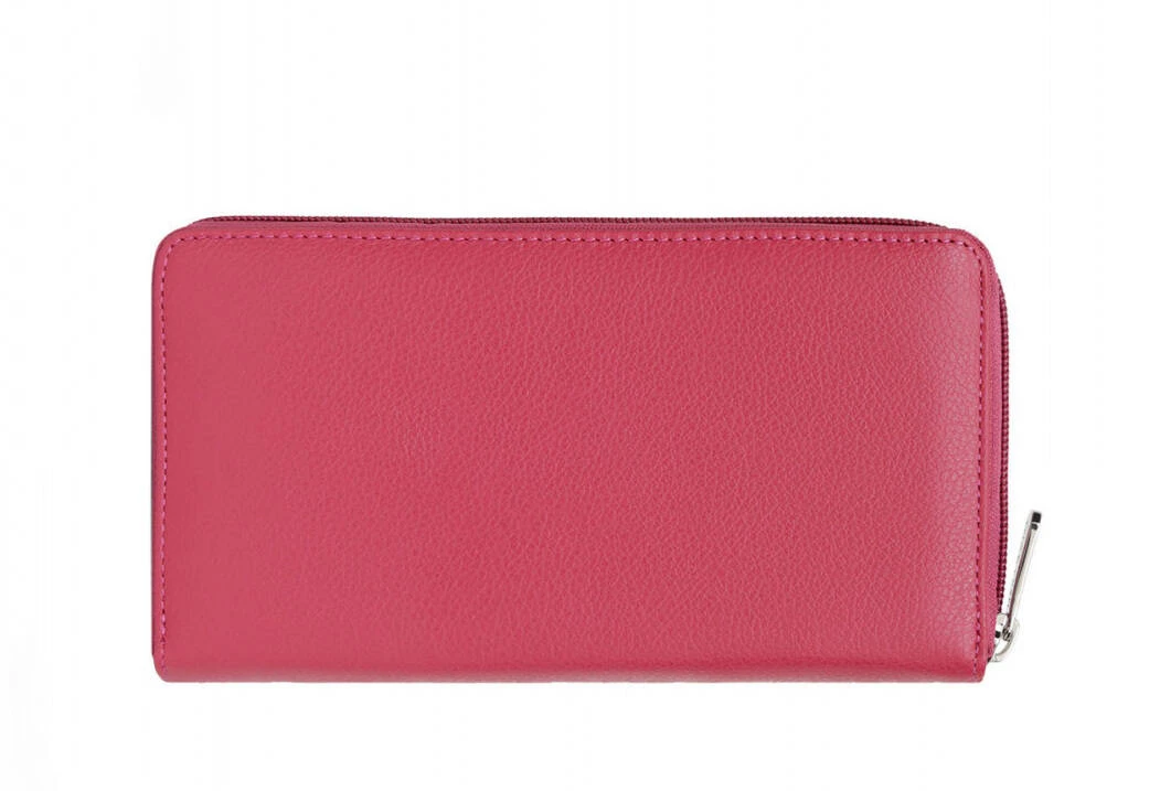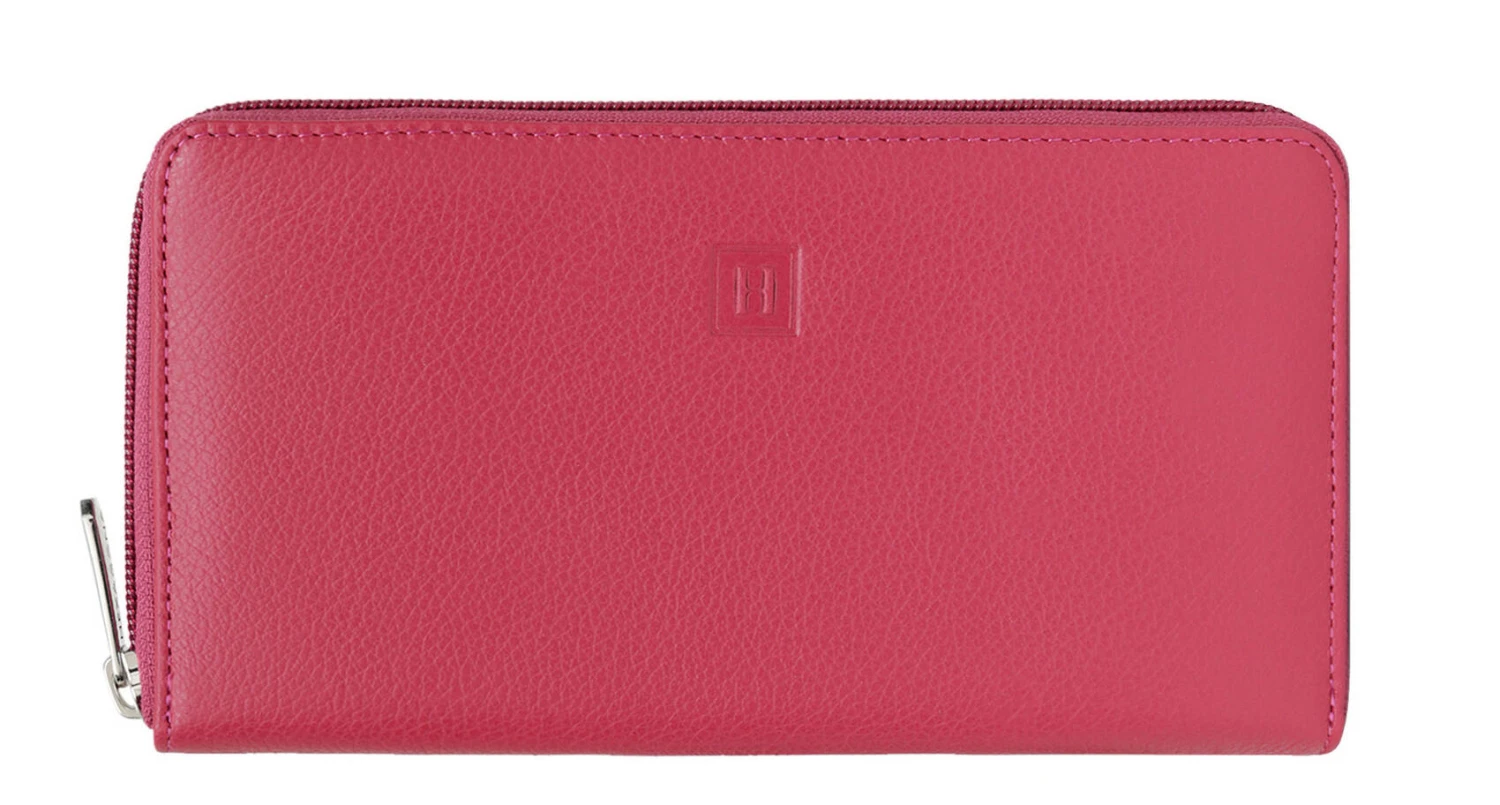 Portefeuille en cuir de vachette grainé , Fermeture zippée, Finitions argent brillant. On retrouve quatre poches plates, un porte-monnaie zippé et douze emplacements carte. Il est Compatible cartes de crédit, CNI, permis de conduire, passeport et carte grise.