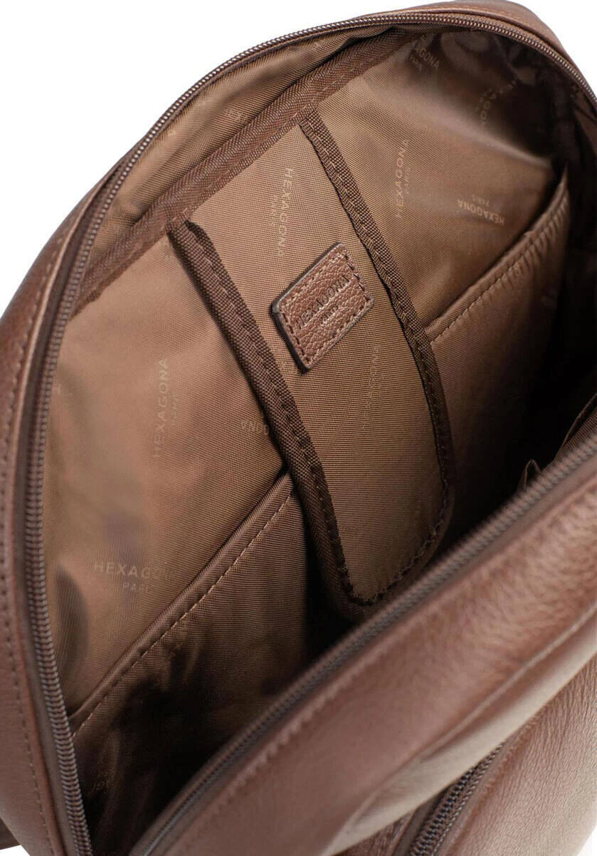Sac à dos en cuir de vachette chocolat de la marque Hexagona .