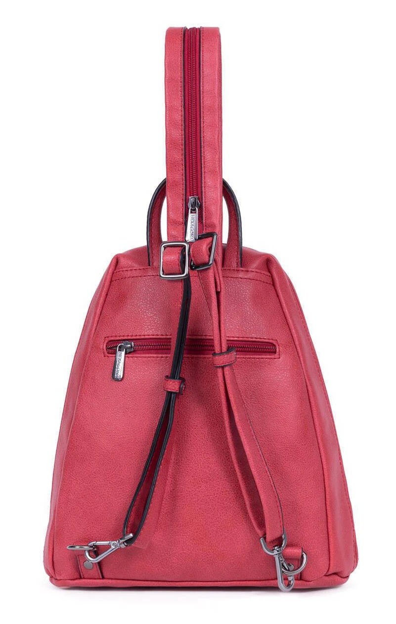 Sac à dos en matière synthétique pour femme, il se ferme à l’aide d’un zip à double curseur. Sous le dessous du sac, on retrouve une métallerie canon de fusil pour éviter le frottement. A l’intérieur du sac à dos , vous avez 1 compartiment principal avec 1 poche de séparation zippée + 1 poche plate zippée + 1 compartiment téléphone. On retrouve en plus 2 poches avant zippées (dont 1 plate) et 1 poche arrière plate zippée. Il y a 2 bretelles transformables réglables + 1 poignée non réglable.Comptez une longueur de 28 cm pour 11 cm de Large et 35 cm de Hauteur .