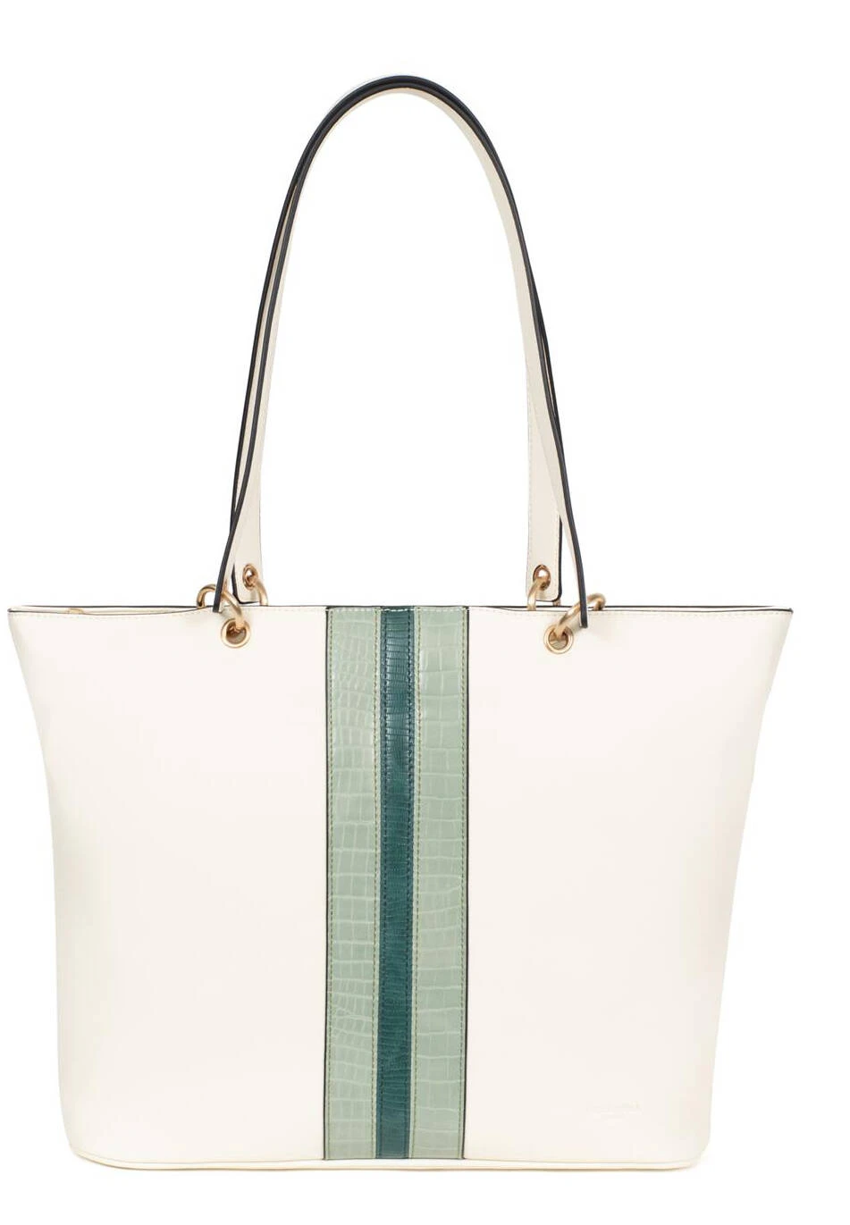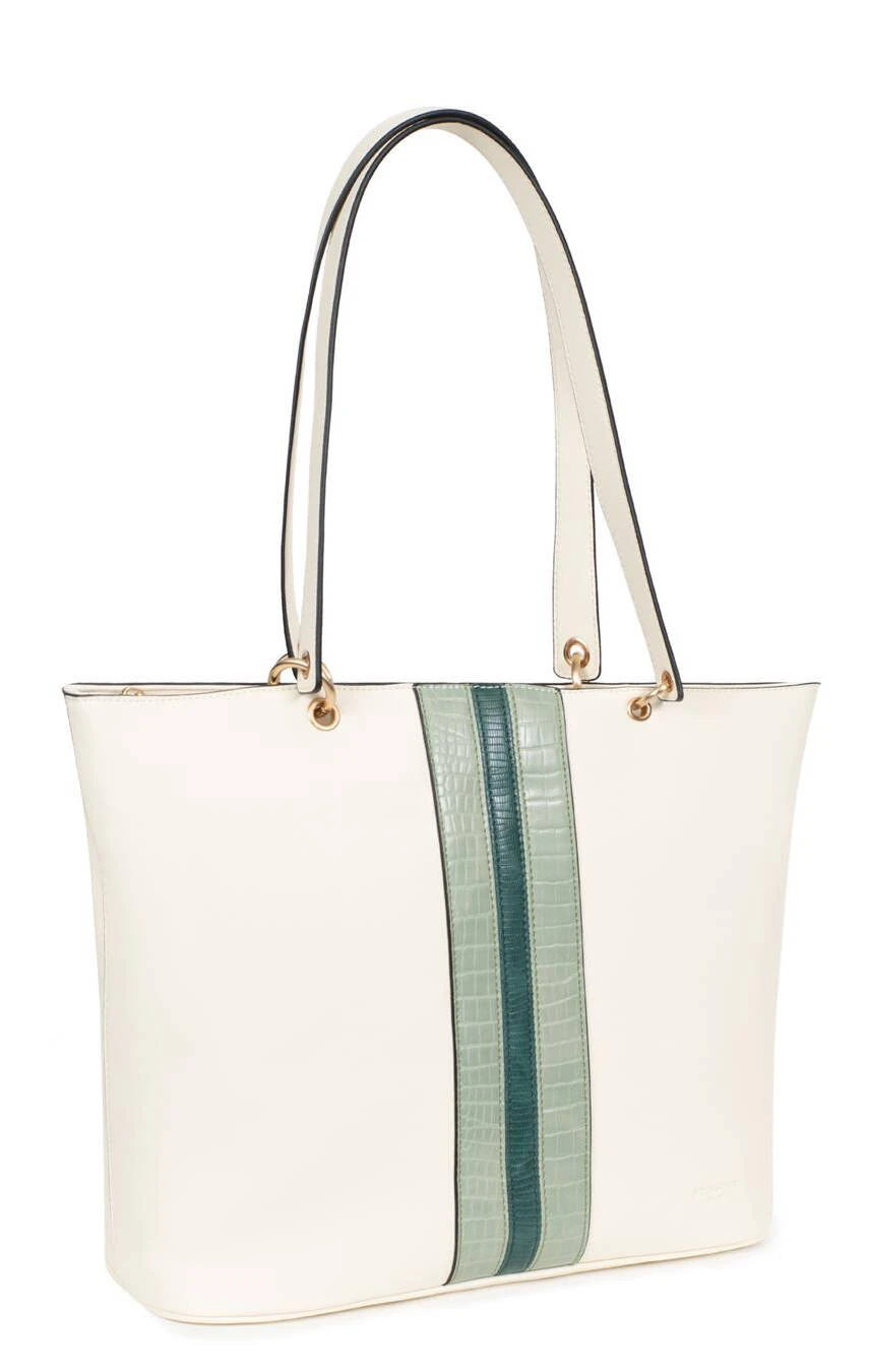 Sac cabas porté épaule synthétique , compatible format A4. Il se ferme à l’aide d’un zip, sa métallerie est de couleur or brillant. Vous avez deux compartiments , très bien organisé, poches intérieures et poche plate zippée à l’arrière. Sur l’avant , vous avez une fantaisie avec un bande façon croco et une façon lézard.