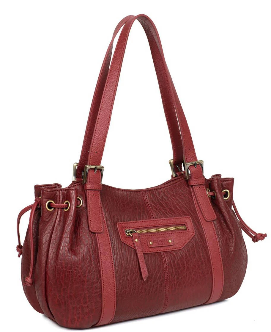 Sac à main en cuir de mouton garni de cuir de vachette grainé pour femme , ses Dimensions sont L 39 x H 20,5 x P 17,5 cm.C’est un porté épaule, 2 anses réglables 6 crans non amovibles (55 cm mini/69 cm maxi), vous avez une fermeture zippée. Sur l’ extérieur , on retrouve 1 poche avant plate zippée et 1 poche arrière plate zippée.A L’Intérieur , il y a 1 compartiment principal avec 1 poche de séparation zippée, 1 poche plate zippée, 2 poches plates (dont 1 compartiment téléphone).
