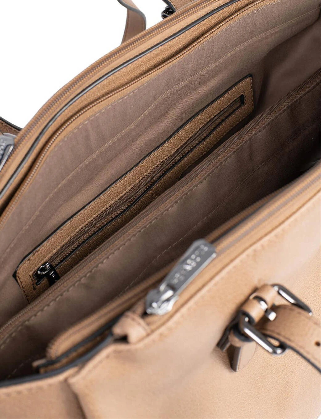 Sac porté épaule 2 anses en matière synthétique, il possède des fermetures zippées et des canons de fusil sous le dessous du sac pour protection . De format A4, très bien organisé avec 3 compartiments principaux avec 1 poche de séparation zippée + 1 poche plate zippée + 2 poches plates (dont 1 compartiment téléphone). Vous le portez à l’épaule avec ses 2 anses réglables , de 52 à 62 cm pour 1.5 cm de large.