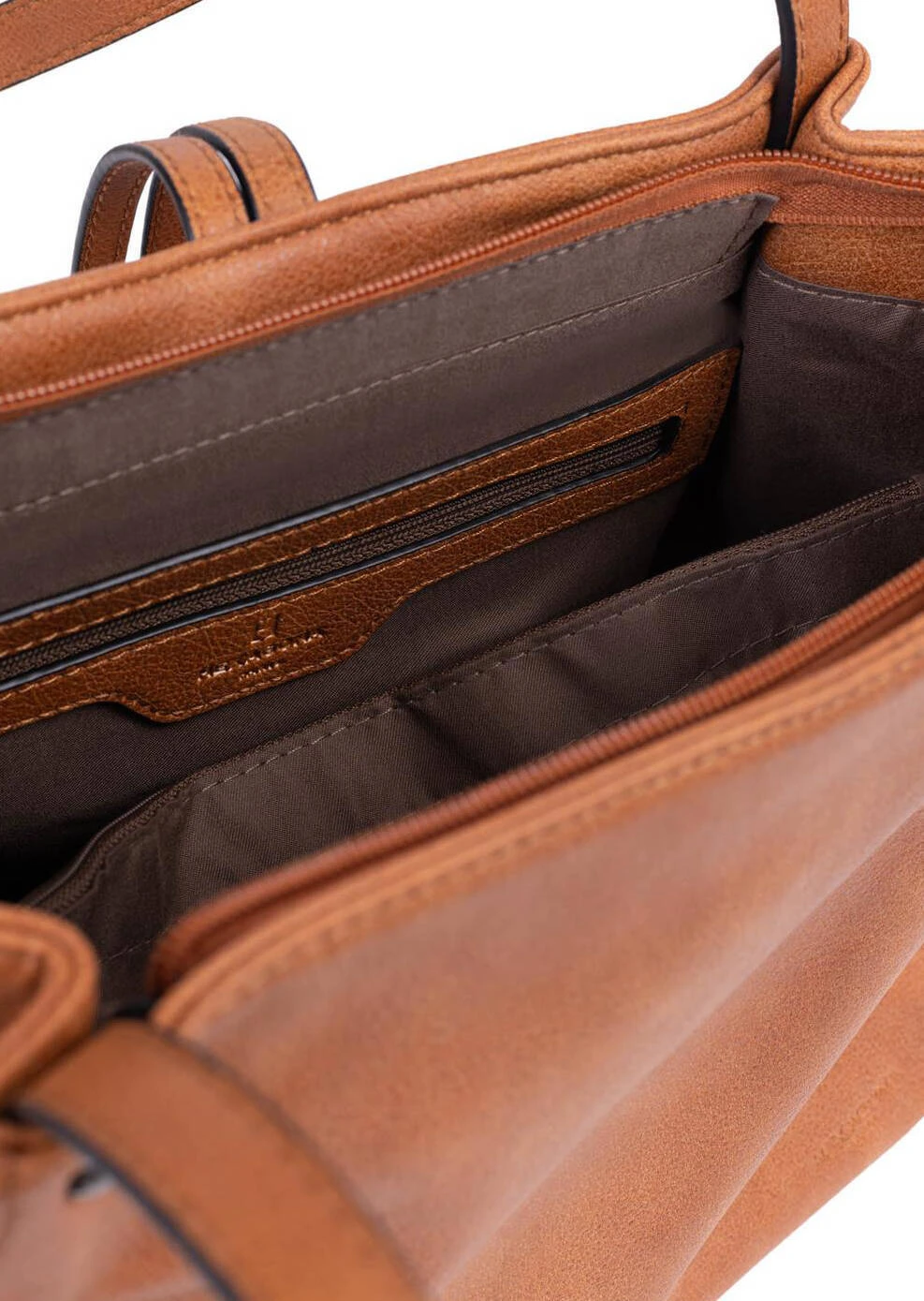 Sac porté épaule 2 anses en matière synthétique, il possède un zip de fermeture, des canons de fusil sous le dessous du sac. A l’intérieur, on retrouve 1 compartiment principal avec 1 poche de séparation zippée + 1 poche plate zippée + 2 poches plates (dont 1 compartiment téléphone) et 1 poche arrière plate zippée. Pour le porté épaule, vous avez 2 anses non réglables de 52.5 cm de long par 1.5 cm de large. En complément , vous avez aussi 1 bandoulière supplémentaire réglable amovible ( 76 à 133.5 cm pour 1.5 cm de large ) .