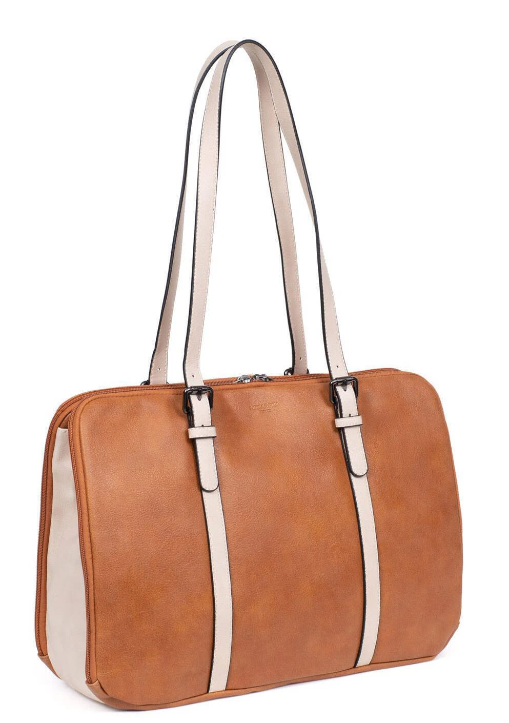 sac porté épaule 2 anses en matière synthétique. On retrouve une forme classique qui de par son format peut servir de cartable, en effet , il est compatible ordinateur portable 15 » et format A4. Très bien organisé, i a 3 compartiments principaux (2 zippés et rembourrés + 1 aimanté) avec 1 poche de séparation zippée + 1 poche plate zippée + 2 poches plates (dont 1 compartiment téléphone). Le sac se ferme à l’aide d’un zip + fermeture aimantée, sous le dessous, on retrouve des canons de fusil. Ses deux 2 anses sont réglables avec 6 crans comptez une longueur de 65 à 75 cm pour 2 cm de large.