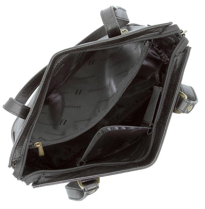 Sac en cuir de vachette de la marque Hexagona . Son cuir de vachette est robuste, on retrouve une ligne sobre, classique, facile à associer. Vous le porterez à l’épaule, il vous offre de nombreux rangements, très bien organisé .