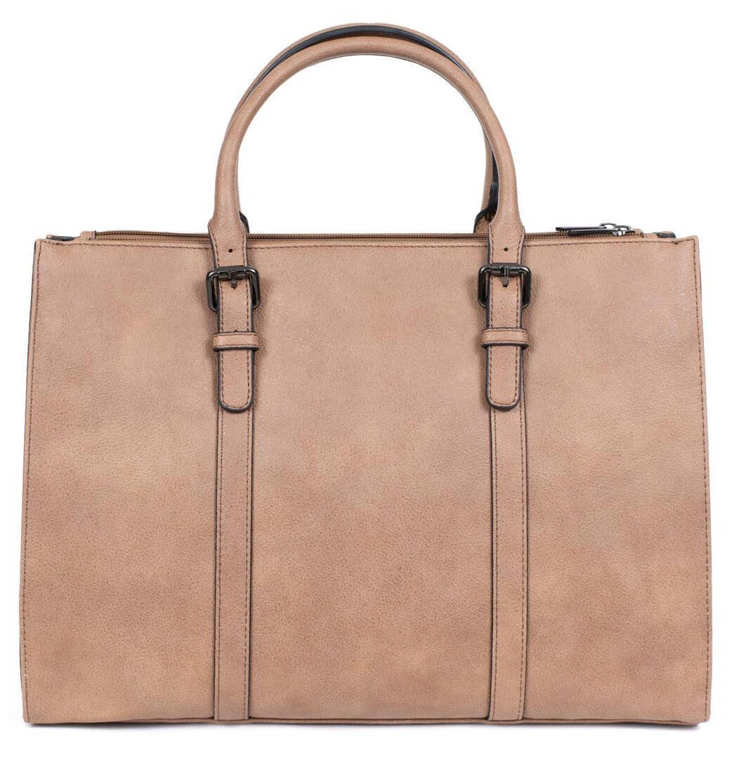 Sac porté main 2 poignées synthétique, il se ferme à l’aide d’un zip. On retrouve des canons de fusils sous le dessous du sac pour protection . A l’intérieur, vous avez 3 compartiments principaux avec 1 poche de séparation zippée + 1 poche plate zippée + 2 poches plates (dont 1 compartiment téléphone). Ce sac est de format compatible A4, il se porte principalement à la main grâce à ses 2 poignées réglables 3 crans( de 34 à 44 cm de long par 1.5 cm de large ) . Et vous avez aussi en complément 1 bandoulière supplémentaire réglable amovible ( de 76 cm à 133.5 cm par 2 cm de large) .
