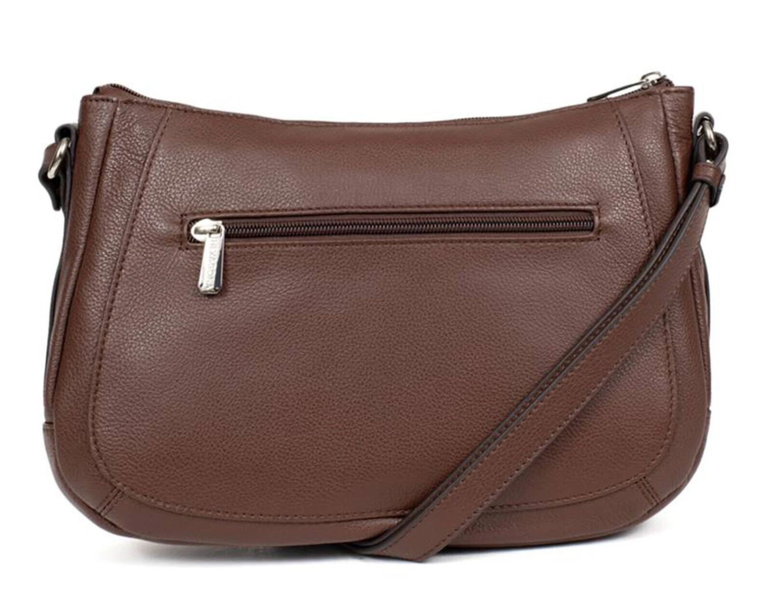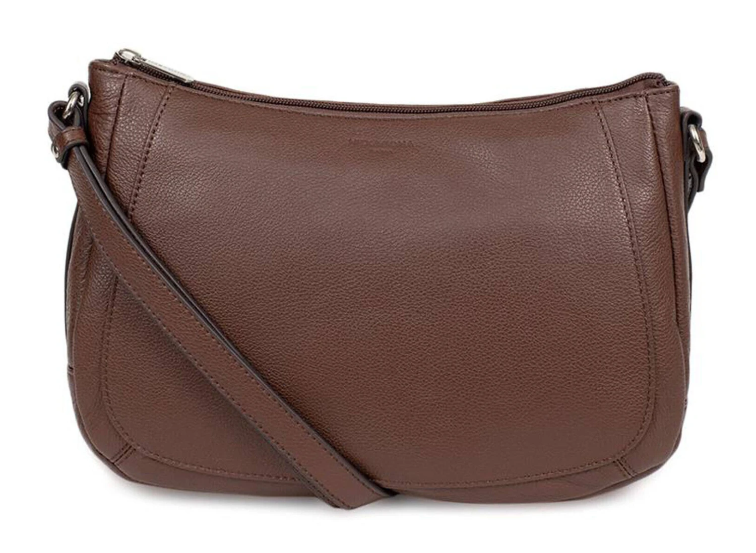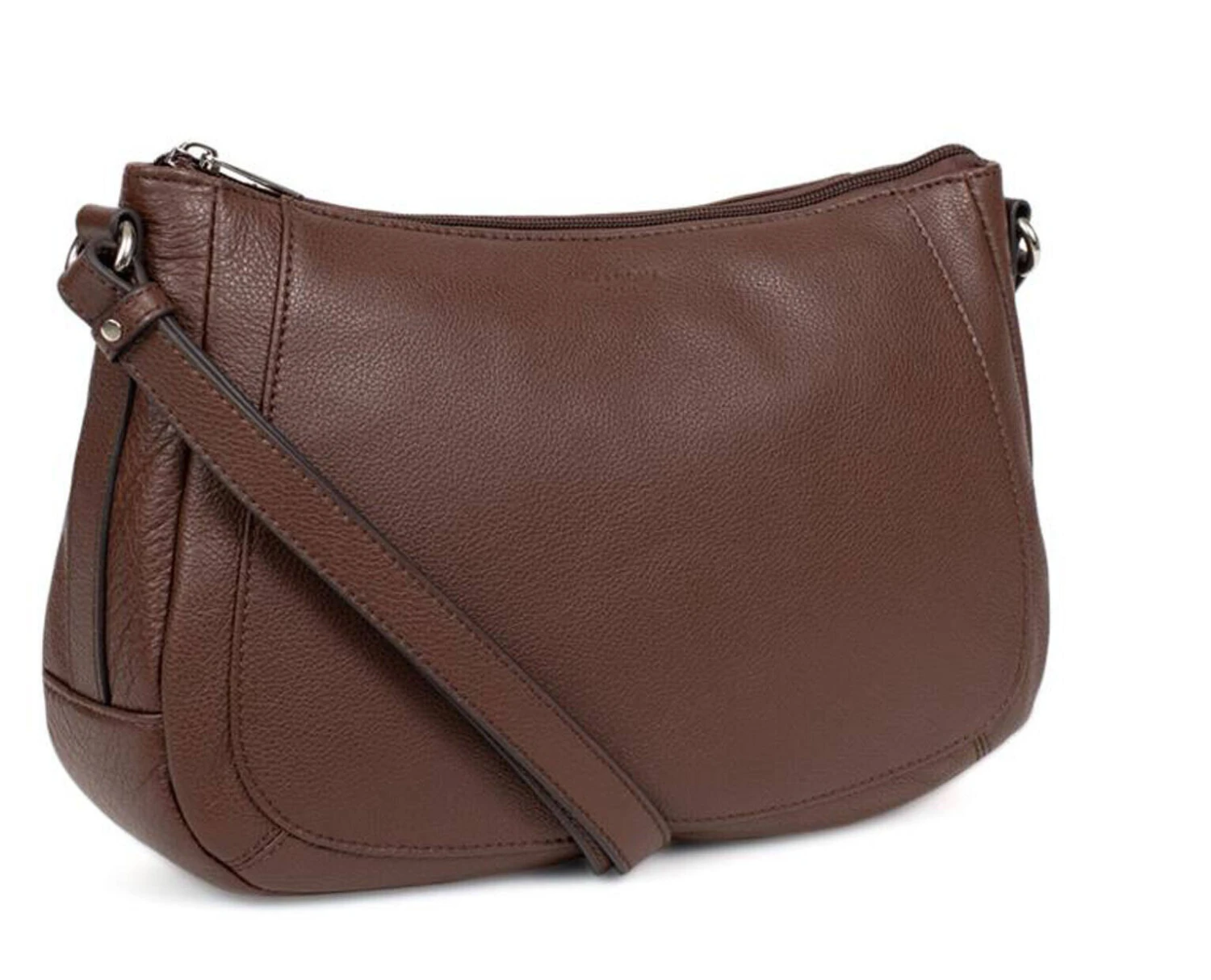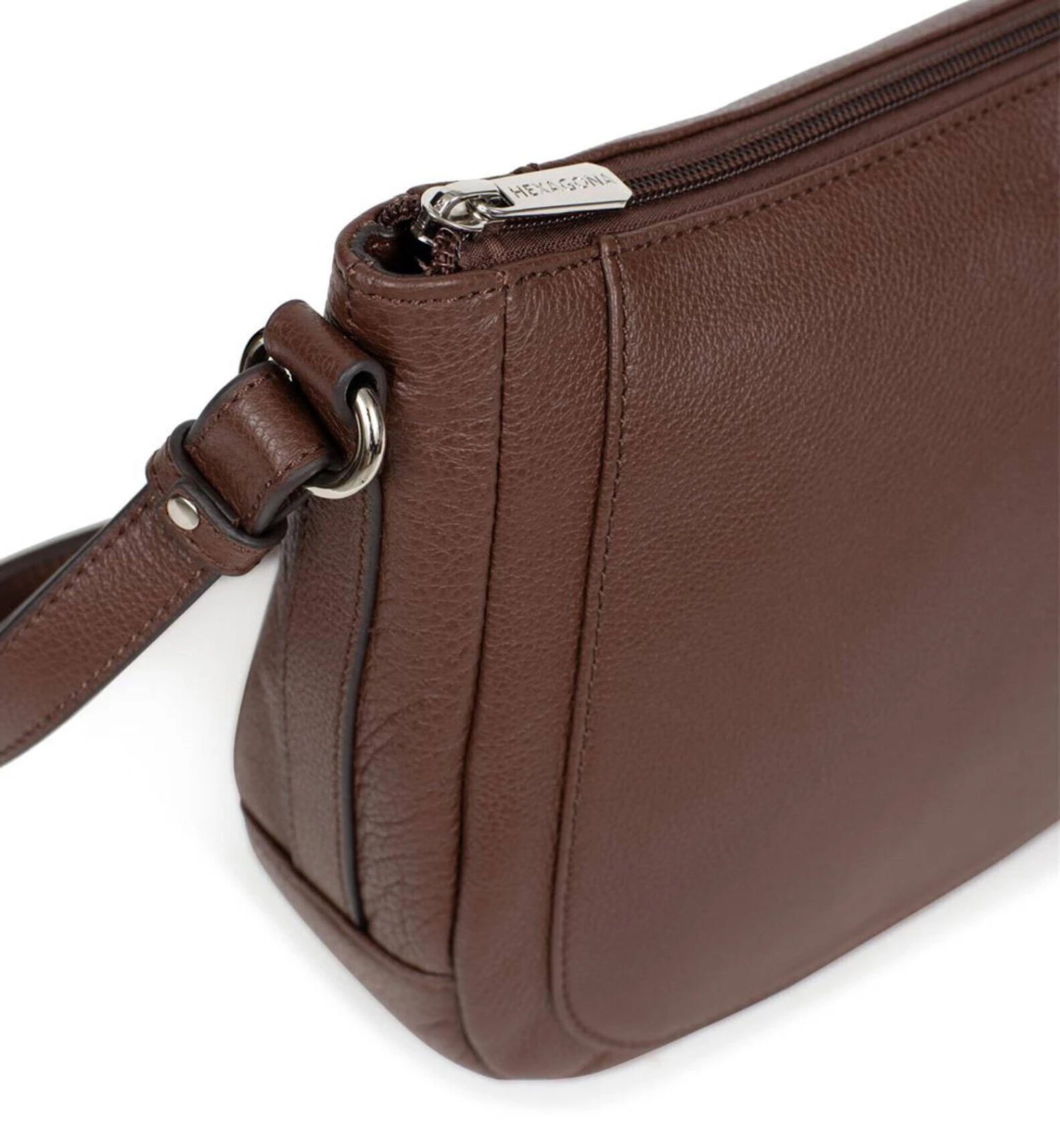 Sac à main en cuir de vachette grainé de la marque Hexagona . On aime son format , pratique et non encombrant, c’est un sac bandoulière , porté travers. Le sac cuir est entièrement doublé, se ferme à l’aide d’un zip. Ses zips, accessoires, etc sont de couleurs argent brillant . A l’intérieur , on retrouve 1 compartiment principal avec 1 poche de séparation zippée, 1 poche plate zippée, 2 poches plates (dont 1 compartiment téléphone). Sur l’arrière , vous avez une poche plate zippée , sa bandoulière est fixe et réglable ( 72 cm minimum / 130.5 cm maximum ). Ses dimensions sont : Longueur 29 cm x Hauteur 19 cm x Profondeur 8,5 cm, pour un poids d’environ 0.42 kg.