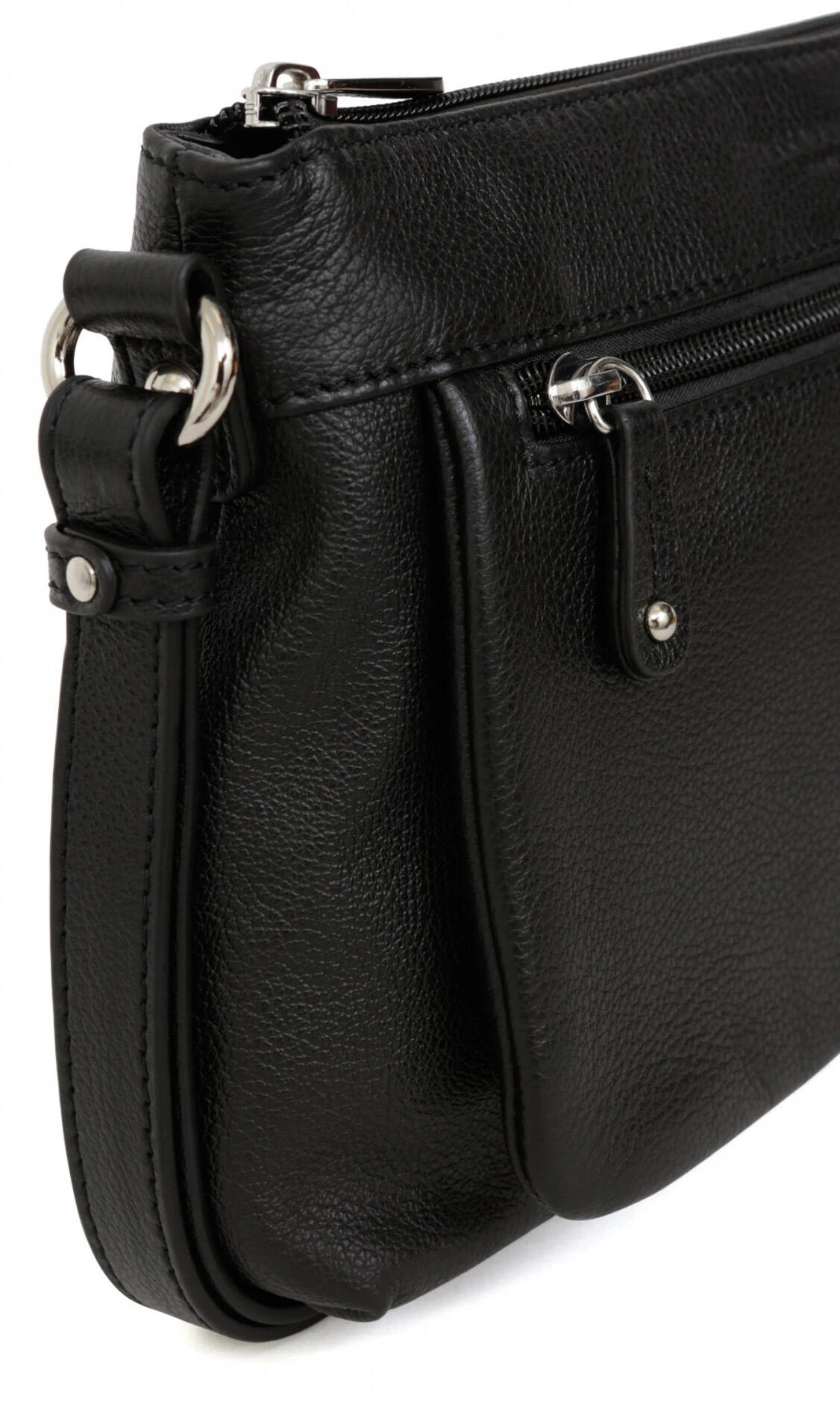 Sac porté travers en cuir de vachette grainé . IL se porte travers , sa bandoulière est réglable (72,5 cm mini / 132 cm maxi). Très sécurisant avec sa Fermeture zippée, l’intérieur est doublé Synthétique.Ses Finitions sont de couleur argent brillant. Sur l’Extérieur , on retrouve une petite poche avant zippée et une poche arrière plate zippée elle aussi . A l’intérieur , vous avez un compartiment principal avec une poche de séparation zippée, une poche plate zippée et un compartiment téléphone .
