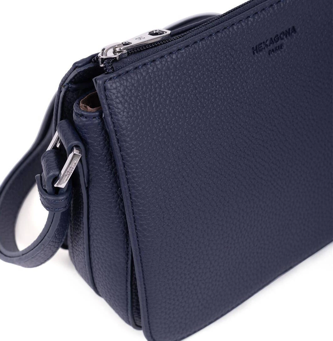 Sac porté travers Synthétique grainé, il se ferme à l’aide d’un zip , vous avez un métallerie argent brillant . Le sac a une bandoulière réglable de 77 à 140 cm de long pour 1.5 cm de large. Très bien organisé , vous avez 1 compartiment principal avec 5 compartiments secondaires + 1 poche plate zippée + 1 compartiment téléphone et 1 poche arrière plate zippée.