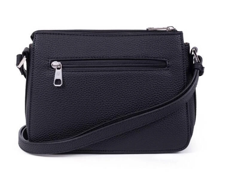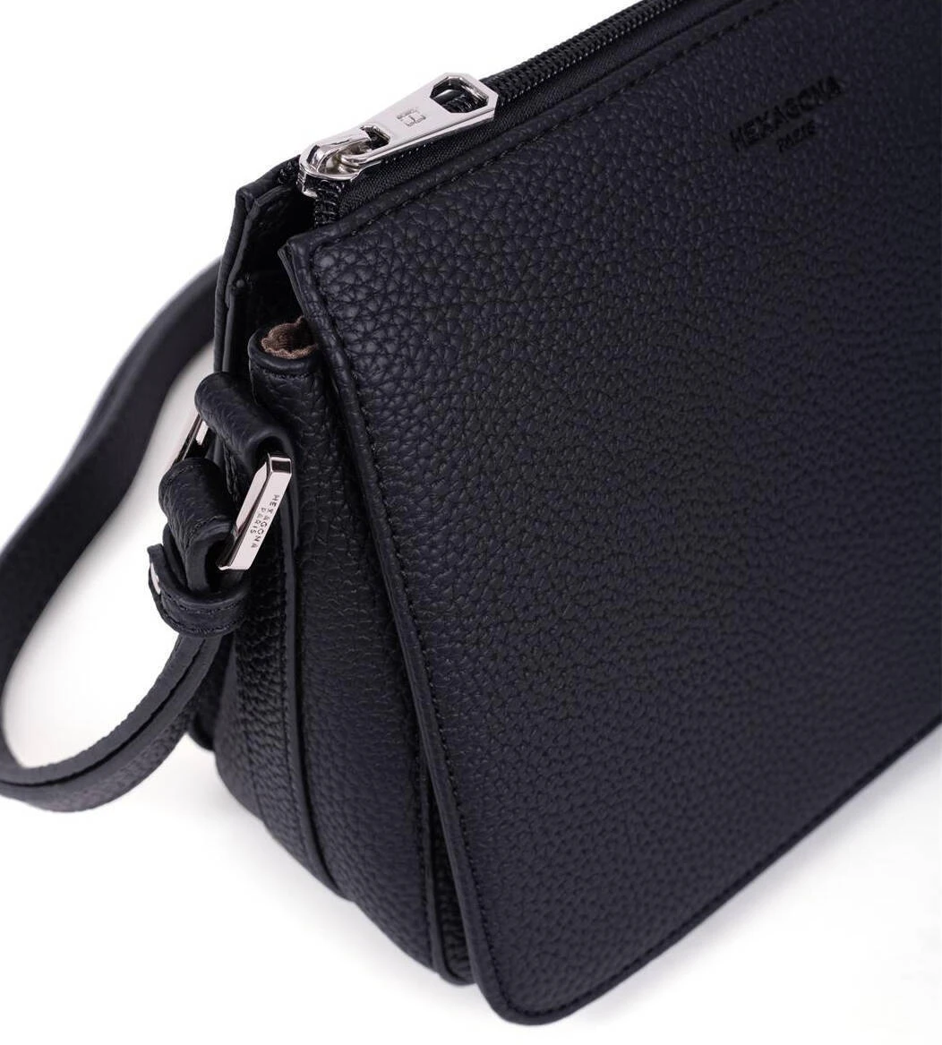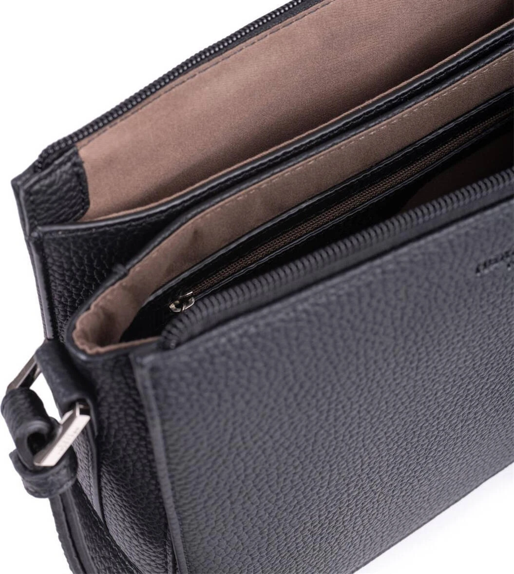Sac porté travers Synthétique grainé, il se ferme à l’aide d’un zip , vous avez un métallerie argent brillant . Le sac a une bandoulière réglable de 77 à 140 cm de long pour 1.5 cm de large. Très bien organisé , vous avez 1 compartiment principal avec 5 compartiments secondaires + 1 poche plate zippée + 1 compartiment téléphone et 1 poche arrière plate zippée.