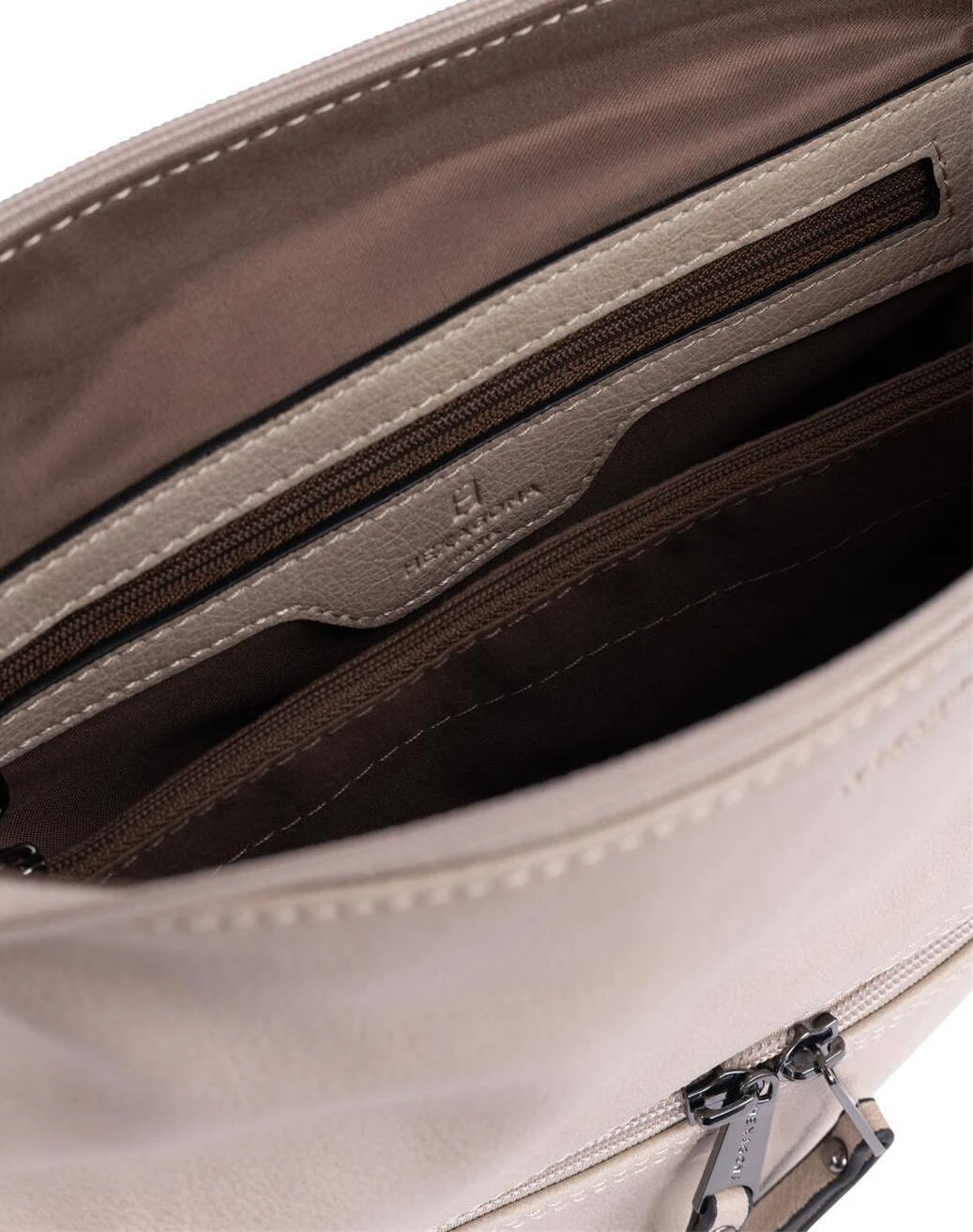 Sac porté travers en matière synthétique , il se ferme à l’aide d’un zip, pour plus de protection le sac possède des canons de fusil. On retrouve sur l’avant 1 poche avant plate zippée à double curseur et 1 poche arrière plate zippée. A l’intérieur, vous avez 1 compartiment principal avec 1 poche de séparation zippée + 1 poche plate zippée + 2 poches plates (dont 1 compartiment téléphone). IL se porte en bandoulière de travers, avec sa bandoulière réglable ( elle fait de 71 cm à 141 cm x 2 cm de large ) .