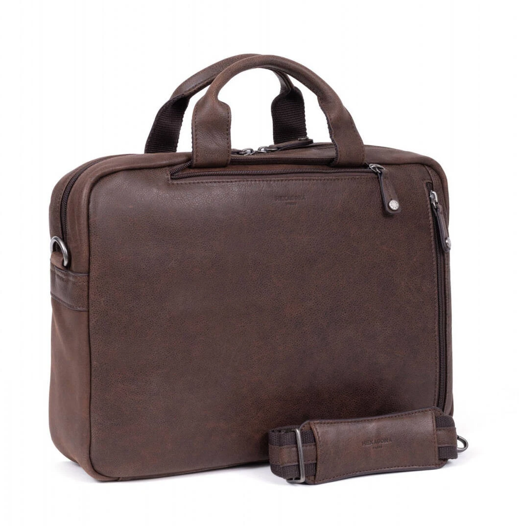 Sac transformable 13″ et A4 en cuir de vachette marron ,dans un look Moderne et jeune,il se distingue par son cuir de vachette vieilli qui lui confère une grande qualité et résistance. Il possède une Fermeture zippée à double curseur, des Finitions argent vieilli. Il se porte à l’aide de ses Deux poignées non réglables et 2 bretelles réglables (avec possibilité de rangement) (45 cm mini / 96 cm maxi). De plus , ce sac vous propose également Une bandoulière supplémentaire réglable amovible avec renfort d’épaule (93 cm mini / 153 cm maxi). Son format est Compatible ordinateur portable 13″ et format A4.Il vous offre pleins de possibilités, en effet, vous pouvez le porter à la main , à l’épaule ou bien façon sac à dos !L’intérieur est entièrement doublé, doublure synthétique, il y un compartiment principal avec un compartiment ordinateur rembourré, une poche plate zippée et deux poches plates (dont un compartiment téléphone). Et à l’extérieur, vous avez une poche avant zippée avec une poche avant plate zippée (avec possibilité d’y ranger la poignée) et une poche arrière plate zippée (avec possibilité d’y ranger les bretelles) avec une poche plate zippée.