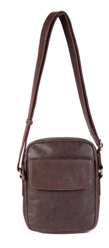 Petite sacoche en cuir de vachette marron de la marque Hexagona . On aime sa praticité en vous libérant les mains . Idéal pour vos sorties , week end , vous apportez avec vous vos effets personnels. On aime son aspect patiné vieilli, plus décontracté , sportwear .