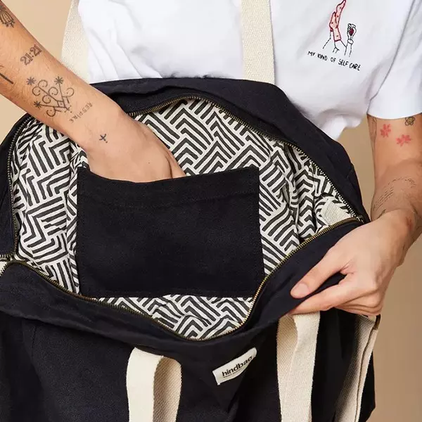 Le grand sac cabas Jean noir est assorti au sac banane Olivia noir d’Hindbag !