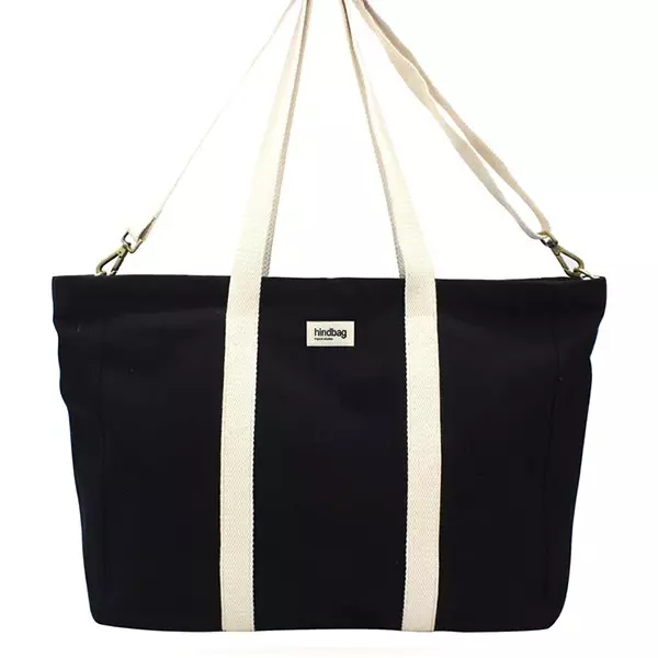 Hindbag mets un point d’honneur à produire leurs sacs de manière éthique. Le grand sac cabas Jean noir a été conçu à partir de coton bio labelisé GOTS et produit dans le respect des conditions de travail des ouvriers. Le coton du sac cabas Jean est souple, résistant et tendance. Vous n’aurez aucun mal à associer votre grand sac Weekender avec vos looks favoris. Ce sac cabas Hindbag est adapté pour vos besoins quotidiens ou pour vos déplacements en tant que sac de voyage.